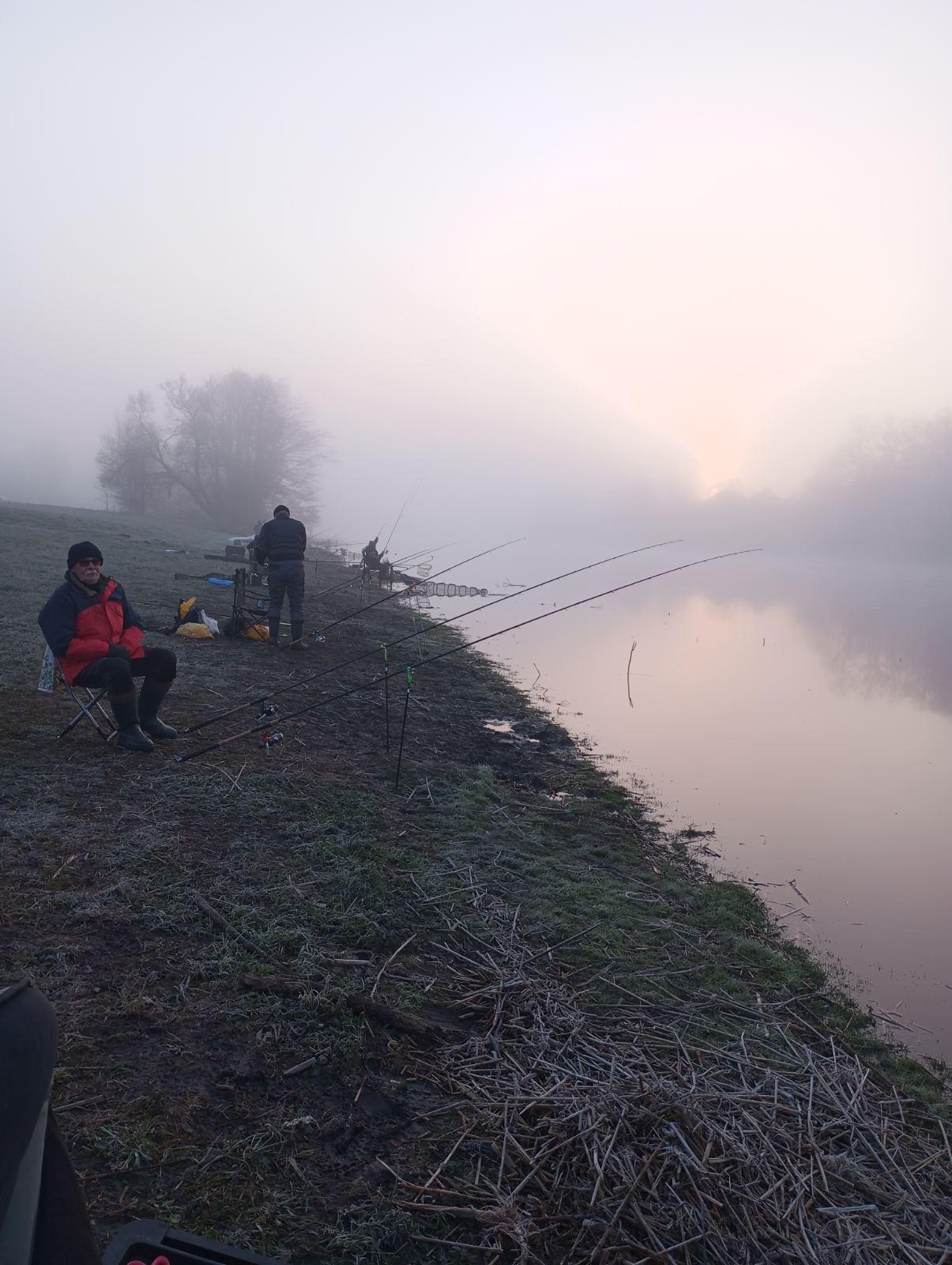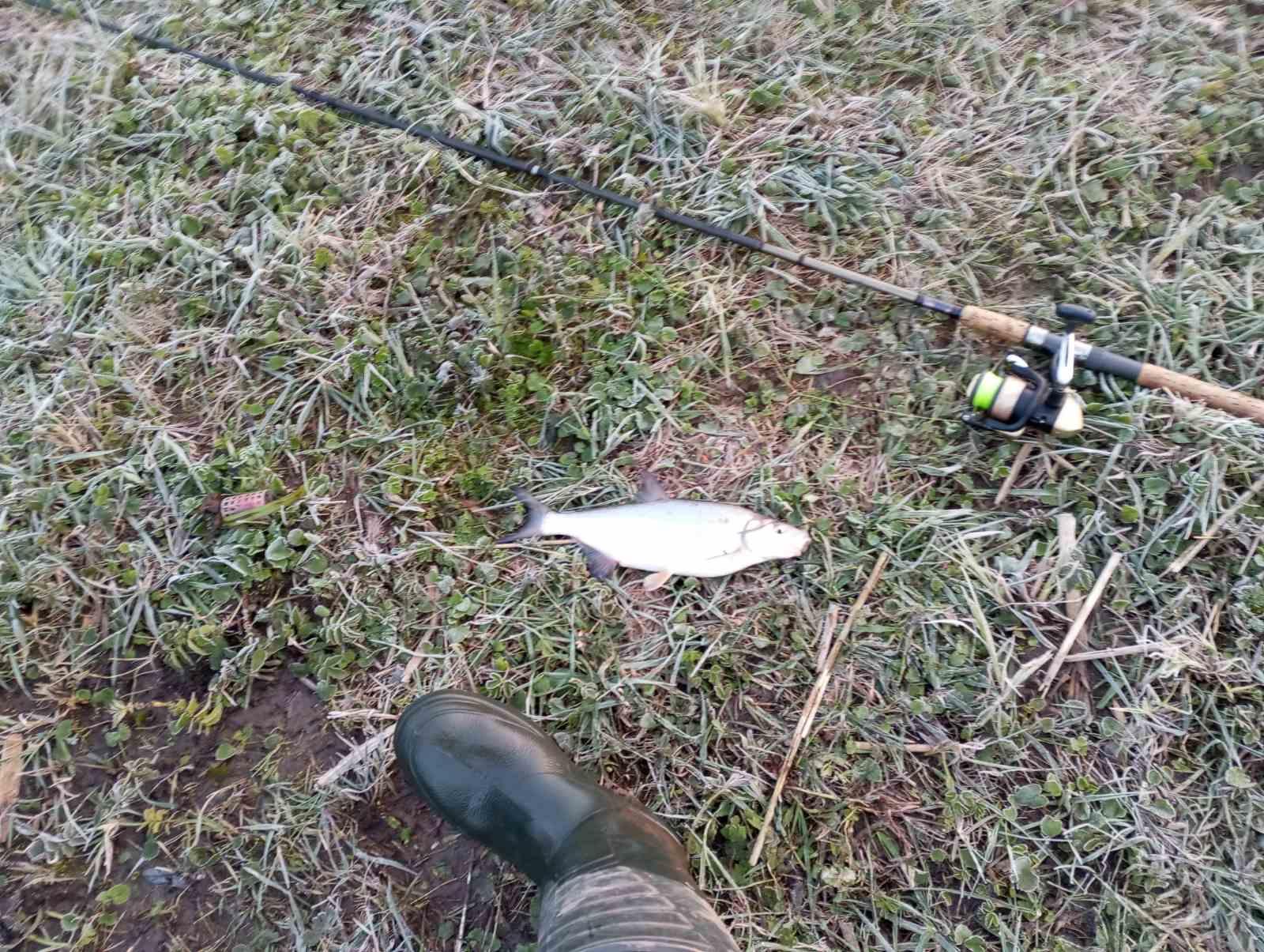 Рыбалка трудная ( не трудовая, а именно ТРУДНАЯ ) из-за погодных условий. Ветер , холодно, кольца на фидерах обмерзают. Прикормку нормально не развести — сразу образуется корка льда. Вода в баночке, которой доувлажняли прикормку, через полтора часа замёрзла. Короче, как то так.
