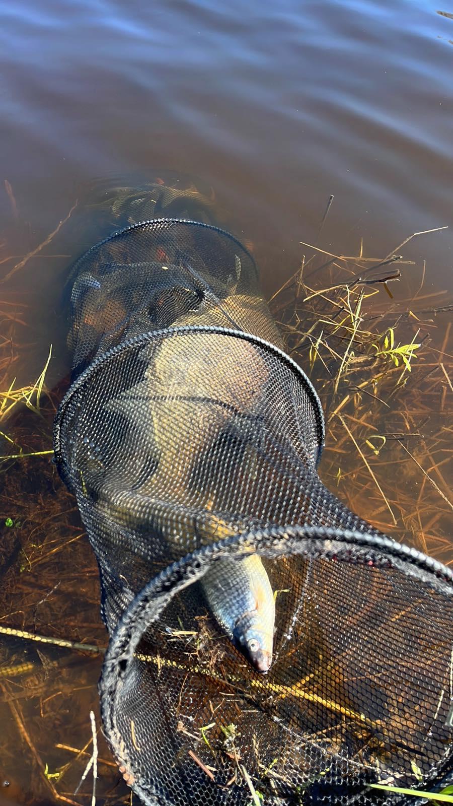 Ну и дело потихоньку пошло. Ловили так до 3, попадалась вимба, плотва и мелкие ельцы. Рыбу всю отпустили, да и по ходу дела тоже выпускали сразу обратно, если садок был далеко 😅