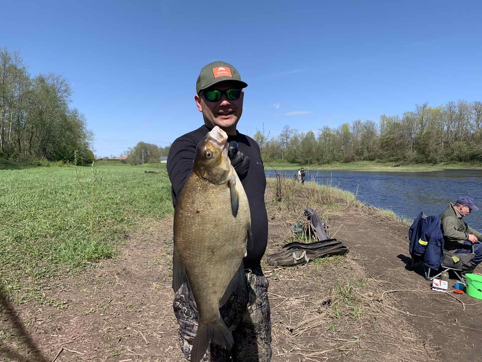 На место приехали где-то в начале девятого. Пока то да сё, ловить начали в 8:30 и сразу стало клевать, но никак не подсечь. Из 5 поклёвок одну реализуешь, а там.. плотва)) Но хотя бы клюёт и что-то попадается. Другу даже посчастливилось поймать неплохого вимбасика, но это не та рыбалка, на которую я его вёз и решаю переехать в другое место и половить на поплавок. В начале 12 мы на новом месте и сходу беру вимбу, затем друг на фидер упускает лещика у берега и решаю поставить ловить его рядом с собой вимбу и плотву)