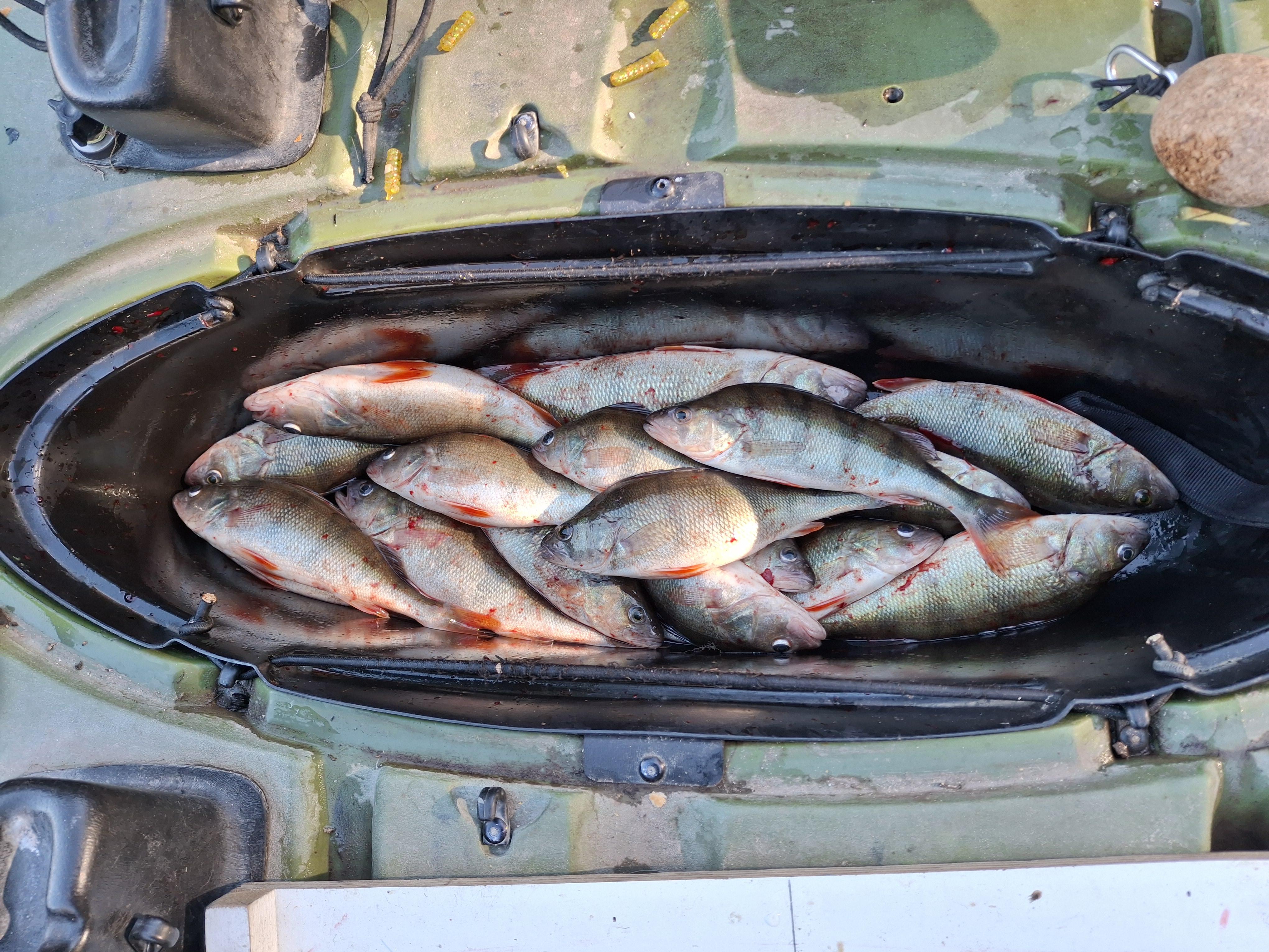 У второго экипажа намного хуже: 6 или 7 недомерков, 0 мерных, 2 окуня. И тоже на двоих.
