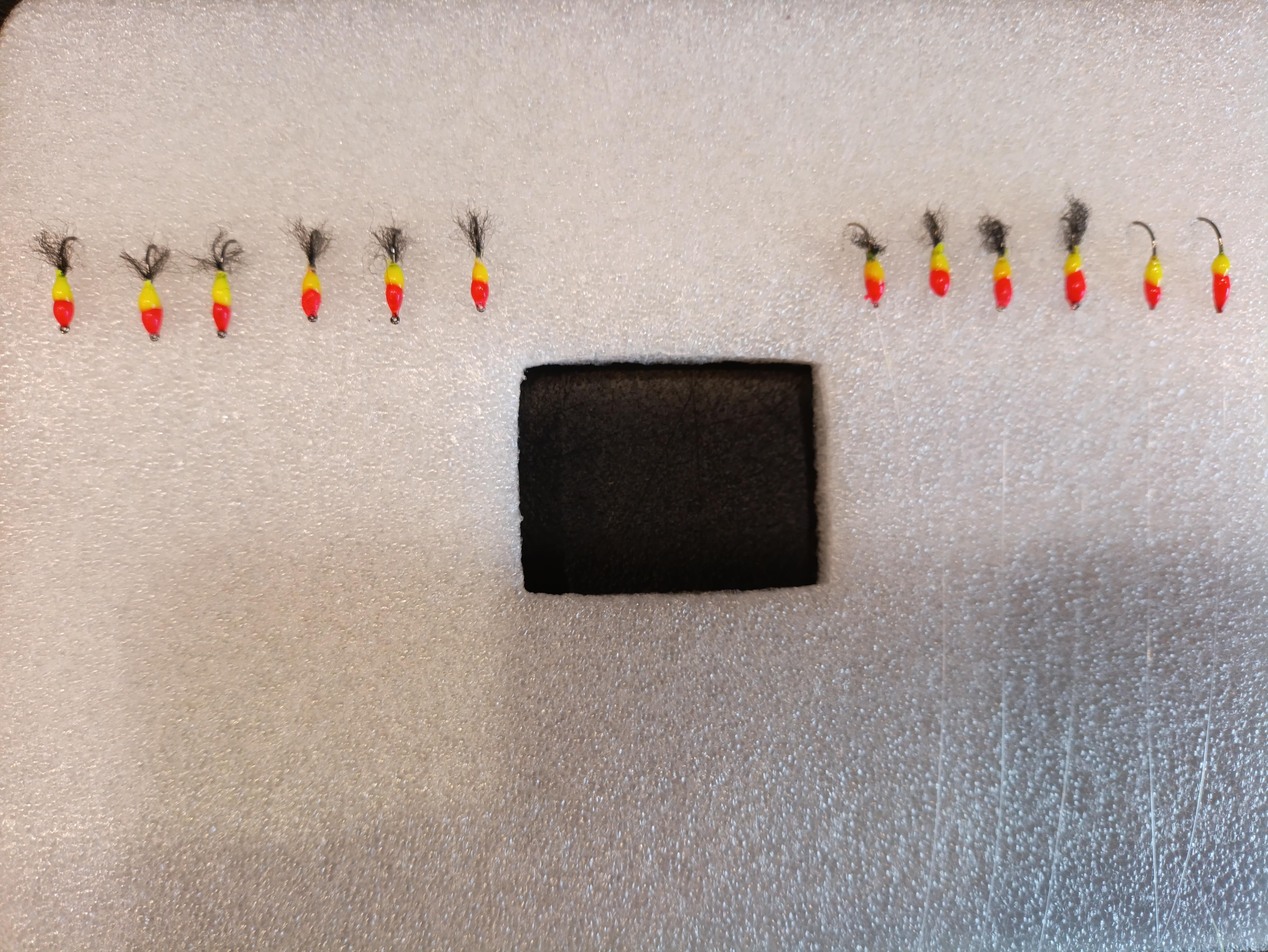 Сделать не сложно. Требуется время и желание. Я в данном случае не стараюсь сделать мормышку ну очень очень ровную/симметричную/красивую. Главное — её функционал! Империческим путём пришёл к такому сочетанию цветов. Но в коробочках разных расцветок красителей у меня предостаточно…