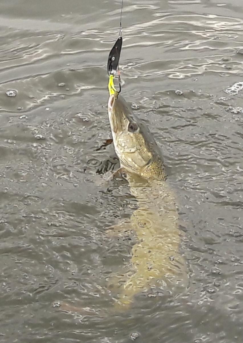 Было несколько проводок, когда когото цепляли, но скорее всего это багрился тот самый карась. Щучьих выходов и характерных щучьих поклёвок не было ни одной.Информацией поделился один из постоянных клиентов магазина «Воблер».