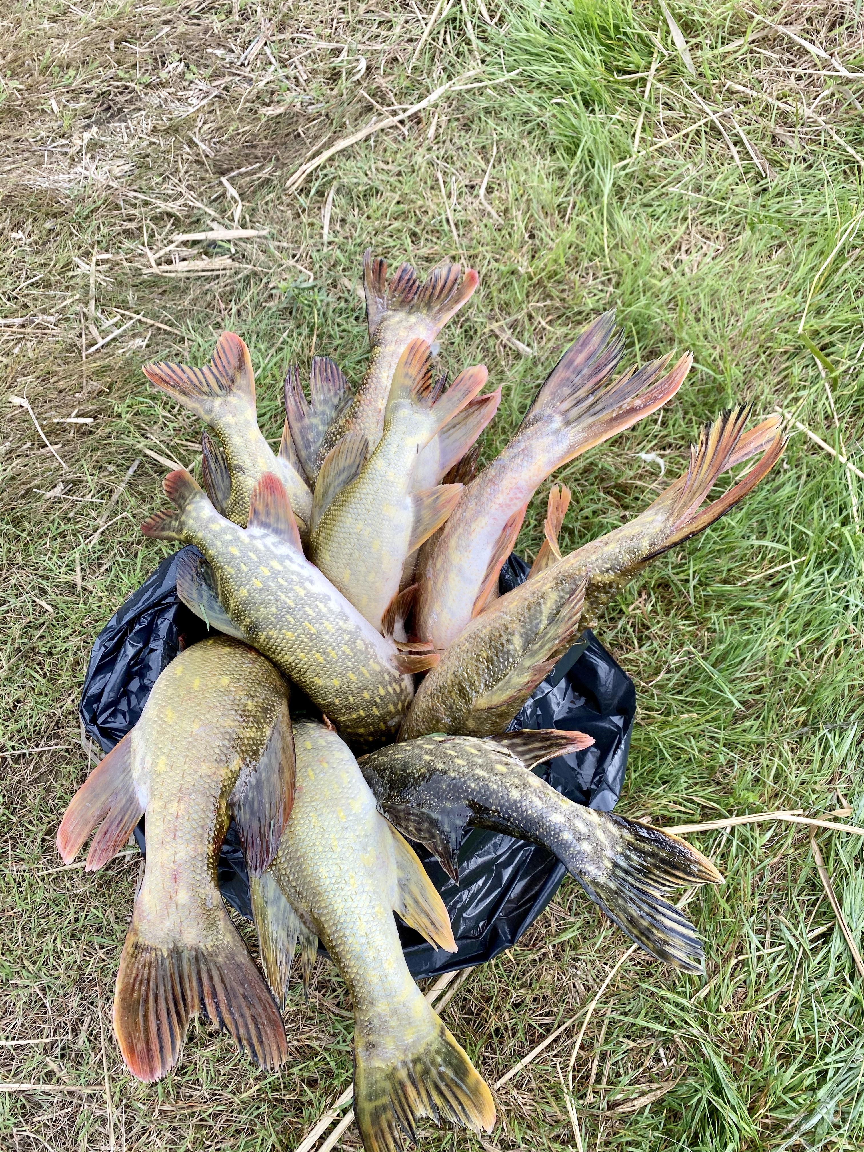 Травы много, воды ОЧЕНЬ мало и она «горячая». Рыба неактивная, заглотов нет, в основном щипает. Размер щуки тоже оставляет желать лучшего: одна килошка, вторая кило двести. И это за целый день!!