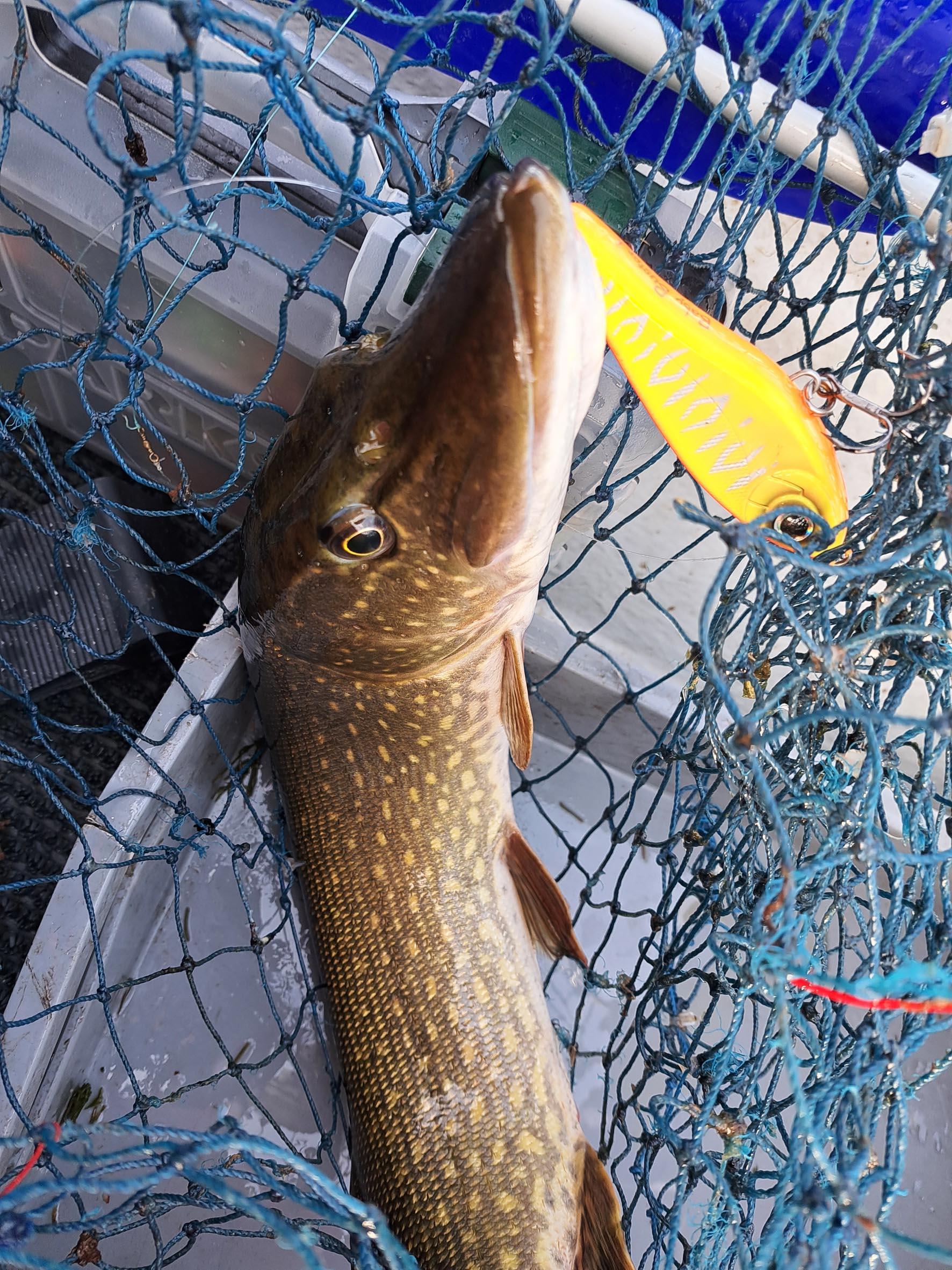 Рыбалка была странной, трудно планируемой. День был щучий: лёгкая волна, солнце за облаками, но светло, на воде дождь не застал. На плотву и окуня не реагировала. Но у меня было секретное оружие: подарок от Дима Море и Rybaling. Вот тут-то он и пригодился: 2 за двушки на него. Ещё одна около 1,5 на другую приманку подобной расцветки. У напарника тоже 3. По паре хороших сошли с крючка. Штук 6 не догнали или не очень хотели догнать приманку. У Юры 6 недомерков.