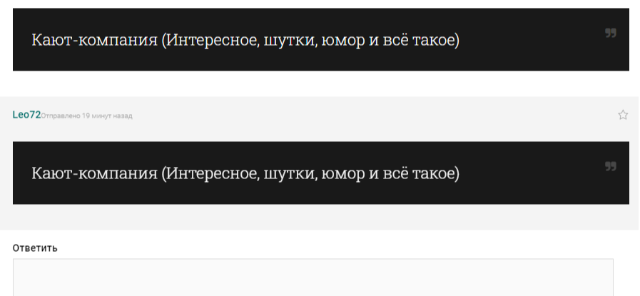 17.11.2019 в 19:19#17526Главная › Форумы › Наш форум › Технический раздел. Обсуждение работы форума › Технический раздел. Обсуждение работы форума