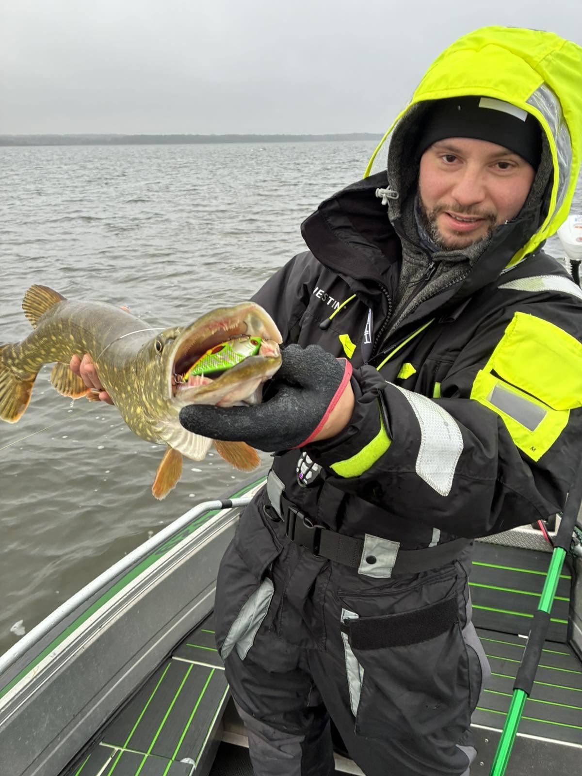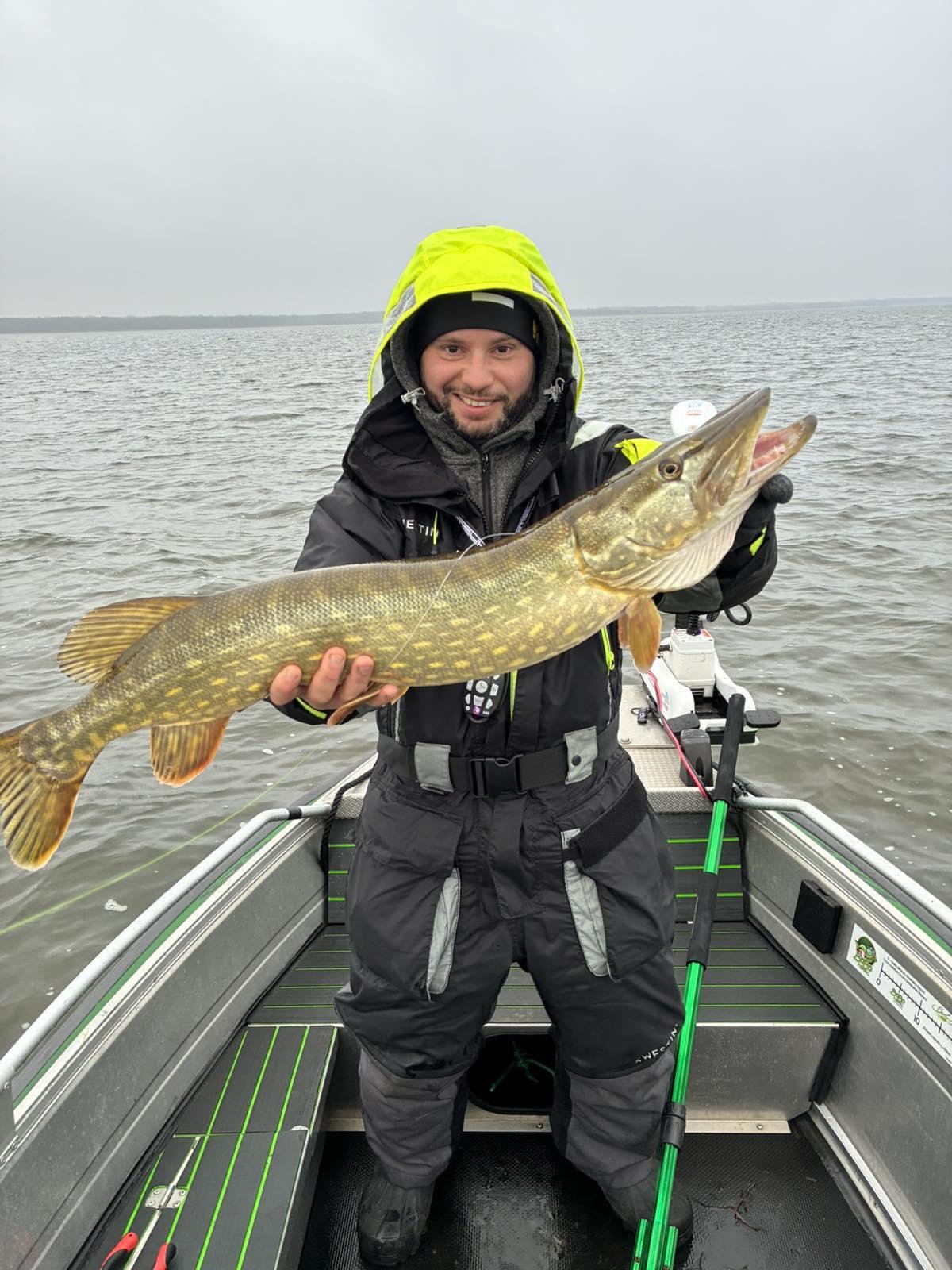 Это не Сааремаа. По 50-60 щук здесь не ловят. Однако экземпляры хорошие. У ребят уже есть, как они сказали, околопятера и околошестера.