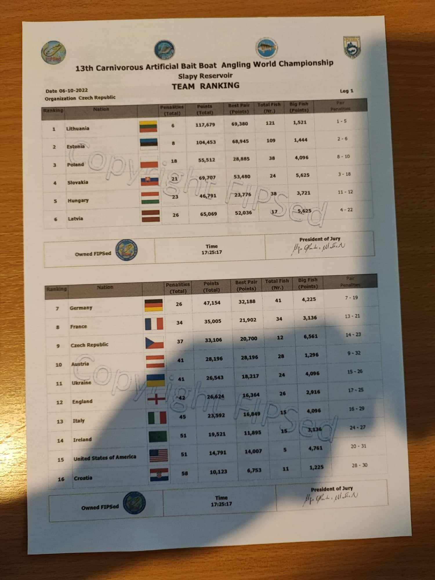 vrungelУчастникРезультаты первого дня Чемпионата Мира по ловле спиннингом с лодок.