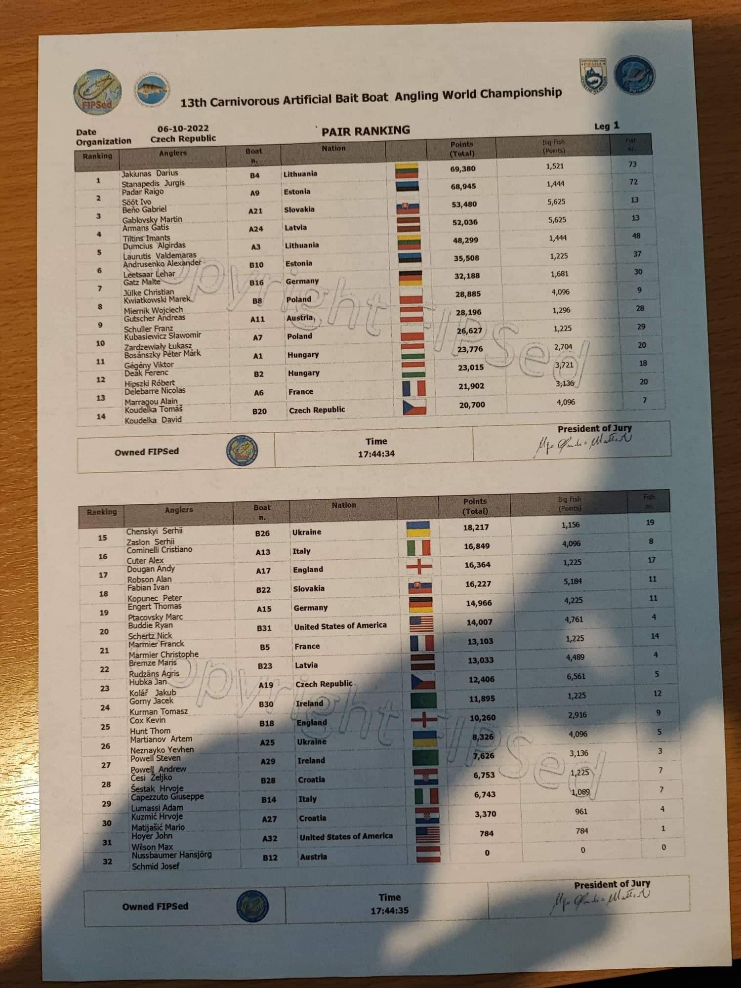 vrungelУчастникРезультаты первого дня Чемпионата Мира по ловле спиннингом с лодок.