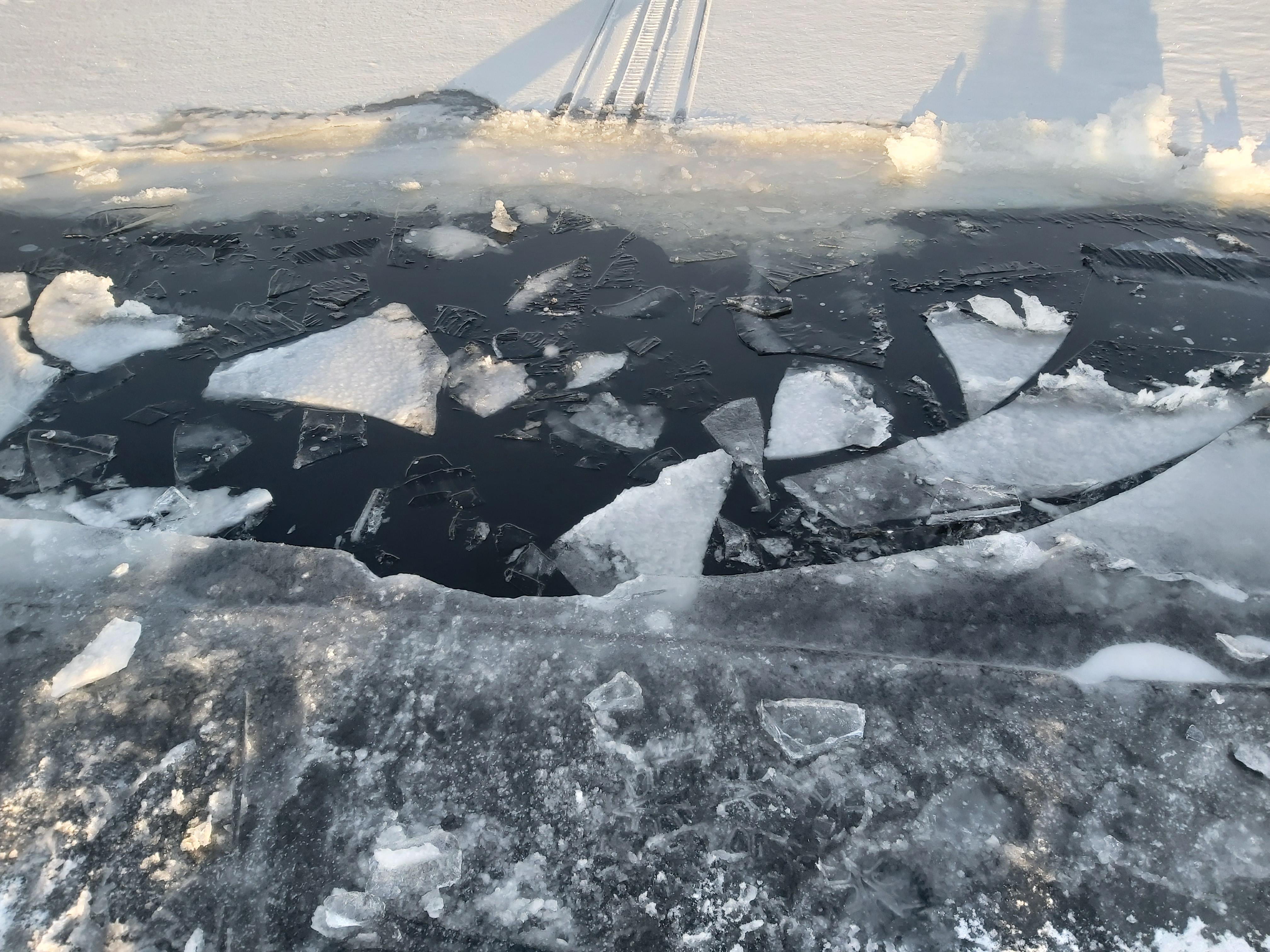 MehhatronikУчастникПолучается собака выскочила, хотя и получила довольно ощутимый удар об льдину а сани уже не вытянула, Лёхе пришлось вперед прыгать, только тогда и вытащила, хорошо ничего не потеряли, а то в санях были бур с шуруповертом эхалот и тд, из-за этих мелких белых льдин она издали казалась сантиметров 40, в последний момент увидел и успел дать газу