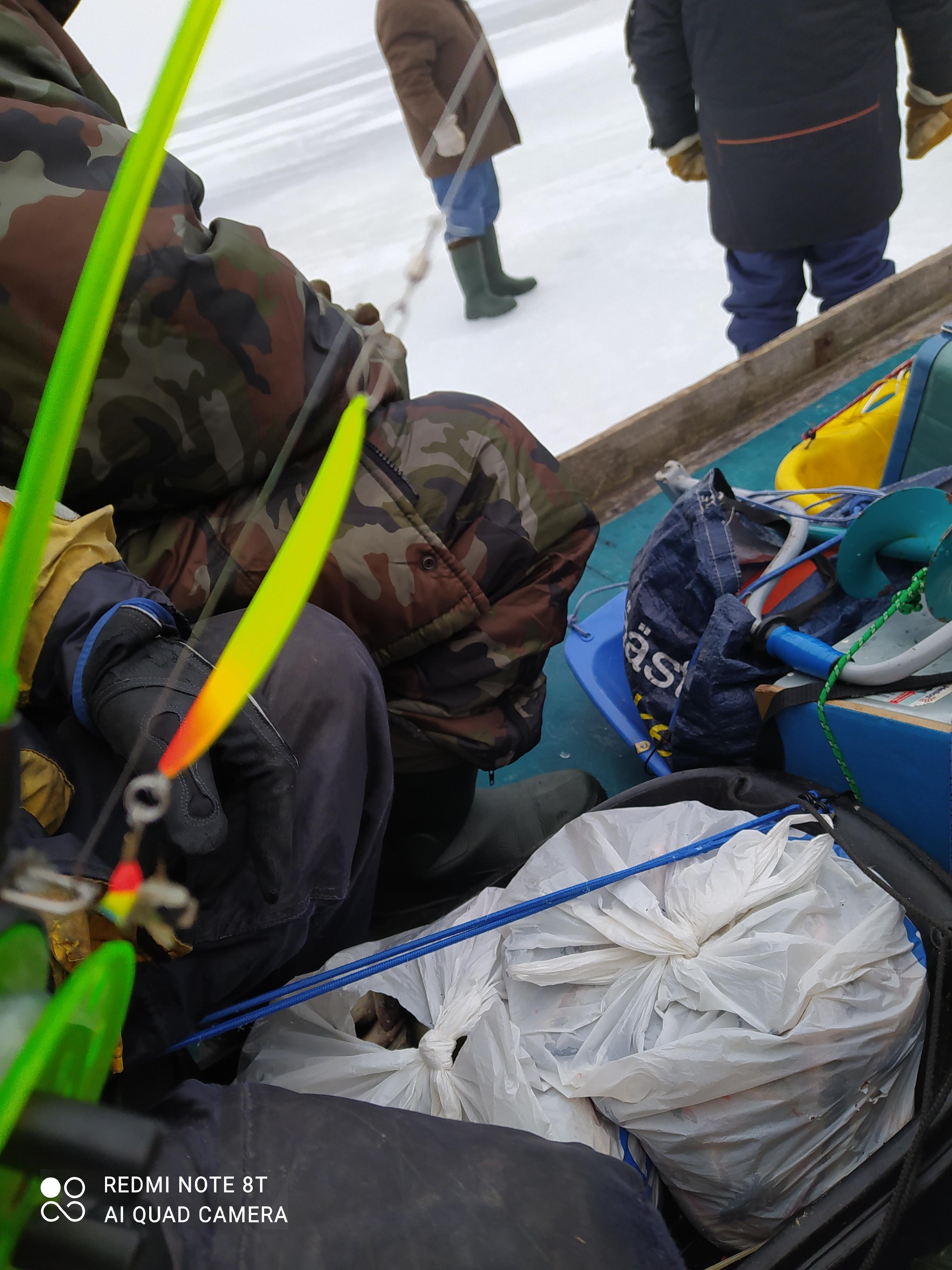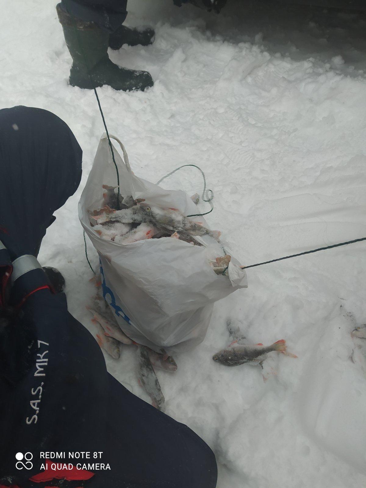 Встретились 14-15 человек у саней. У многих тоже было грустно, но было пару человек, кто нашёл и раздразнил окуня. Они взяли по 8-10кг окуня.
