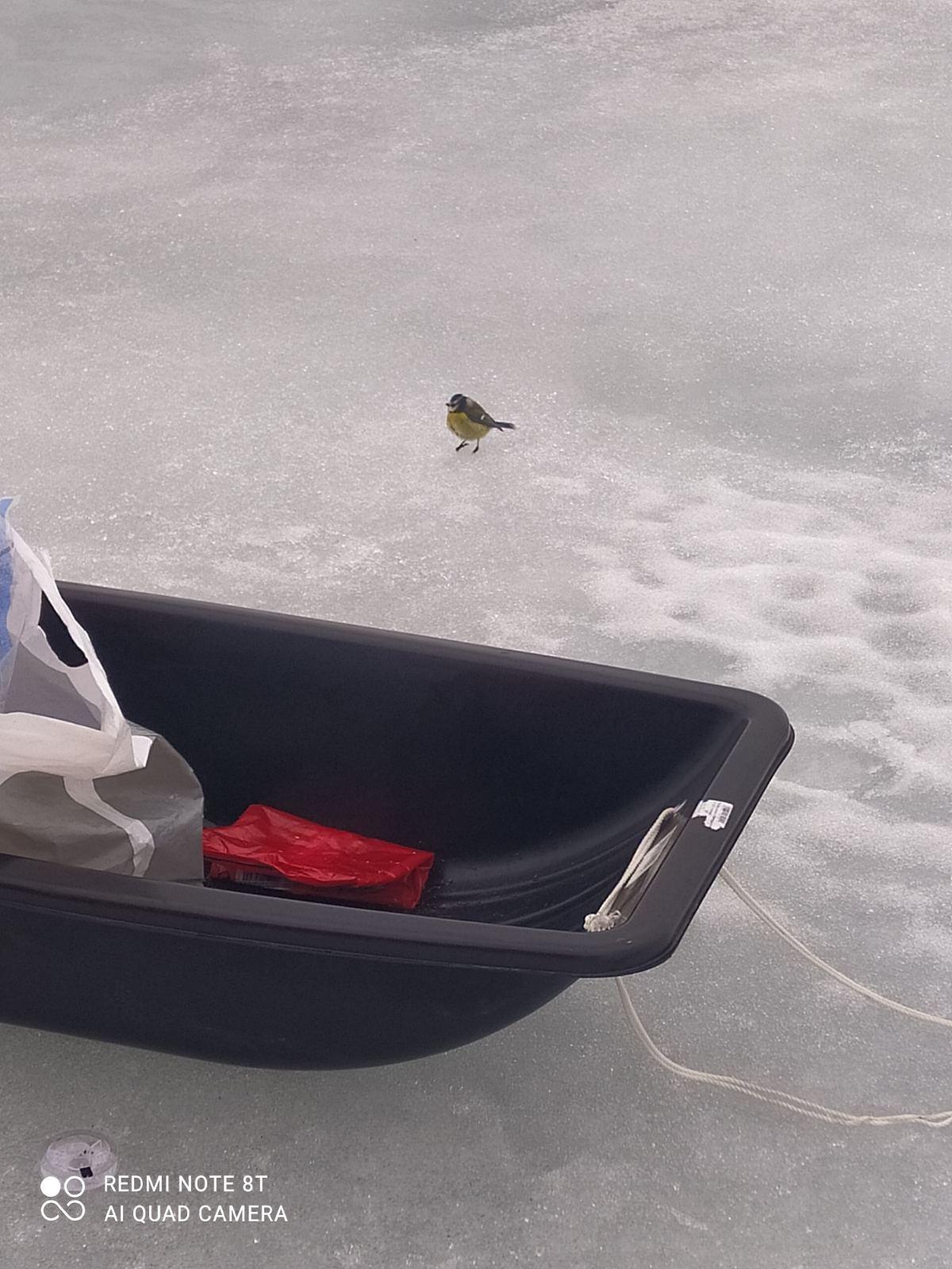 Эта птичка ела с руки, позволяла себя гладить и поехала назад на наших санях.