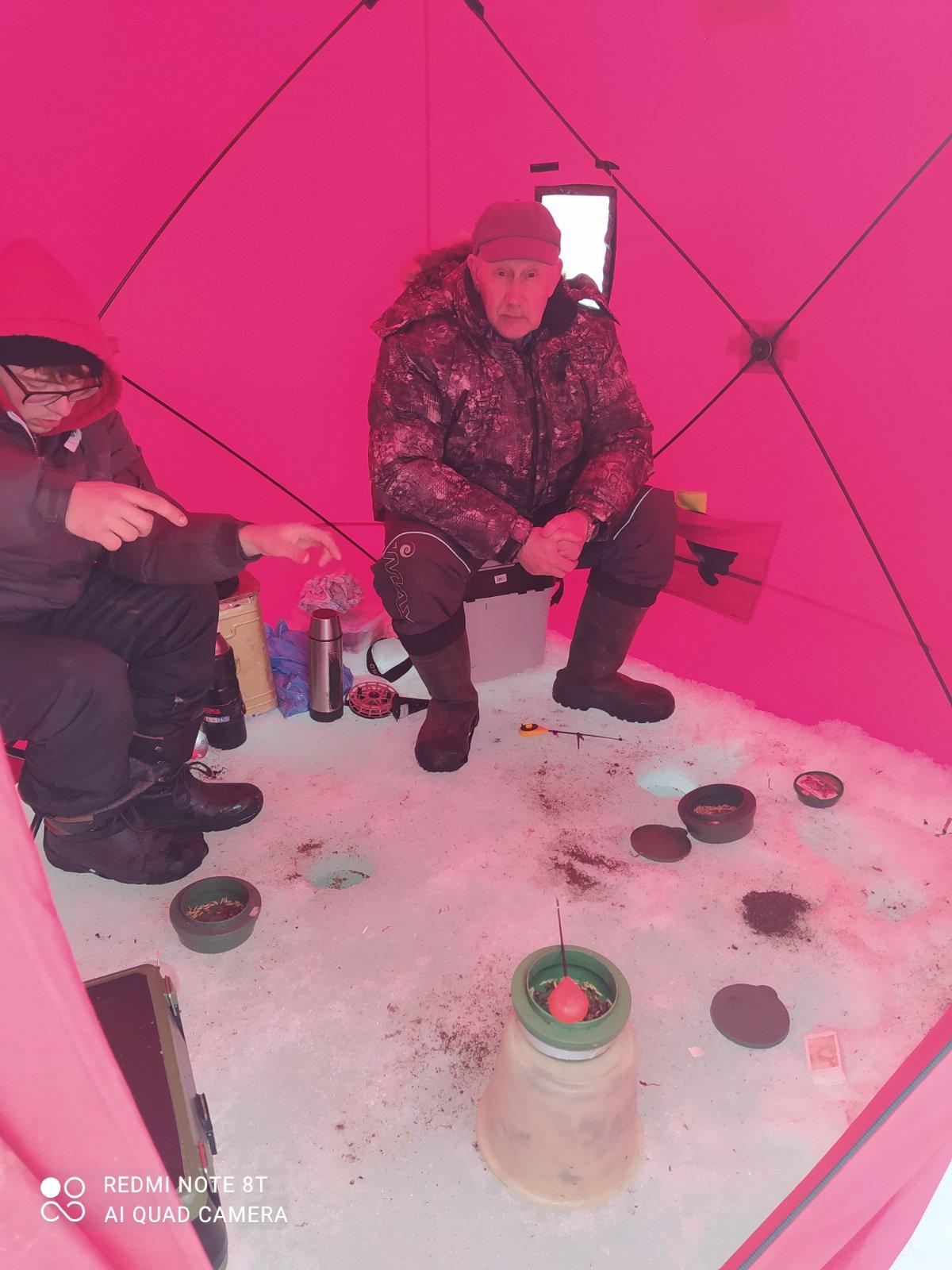 Я забурился, палатку поставил стал закармливаться.