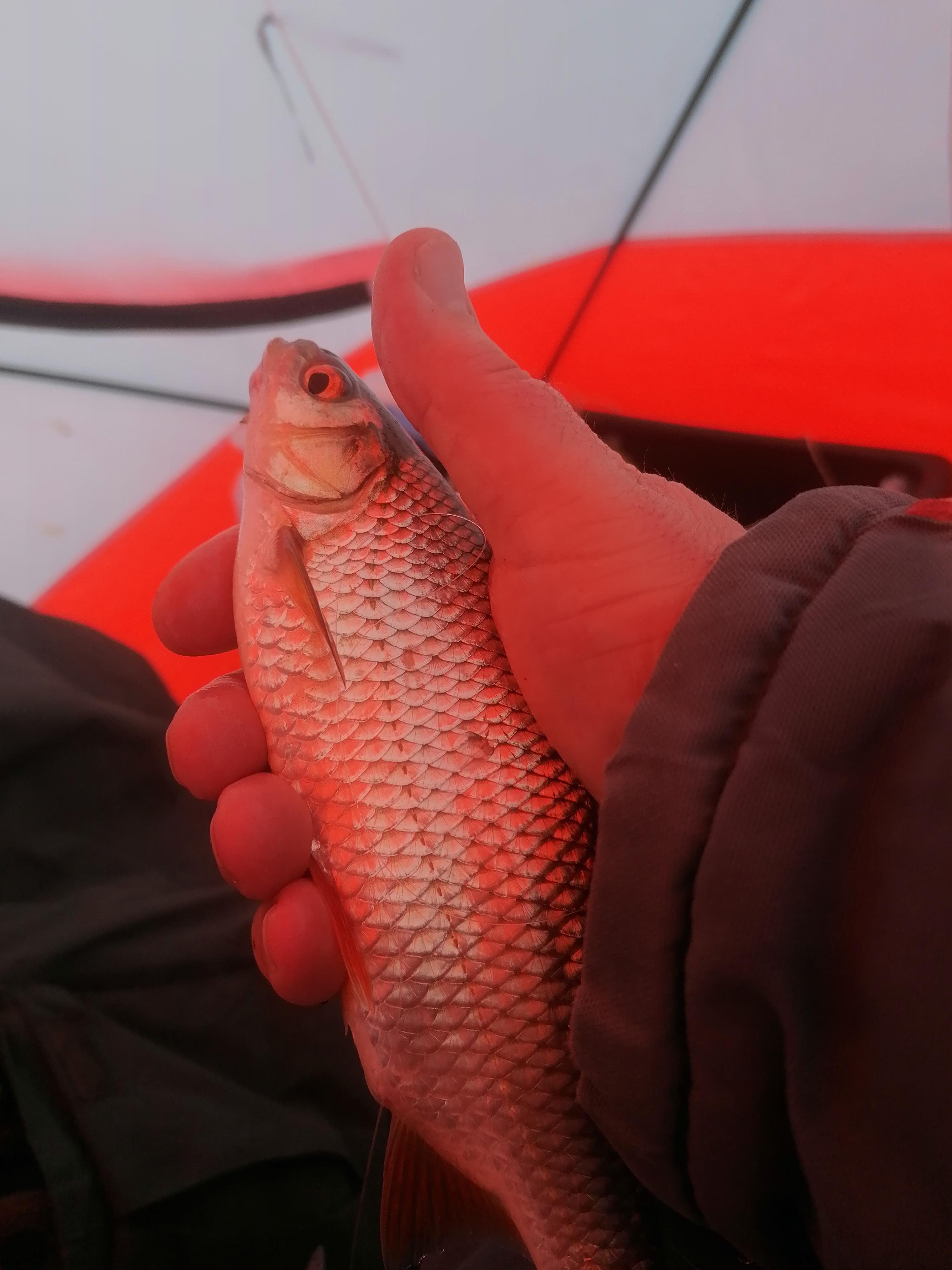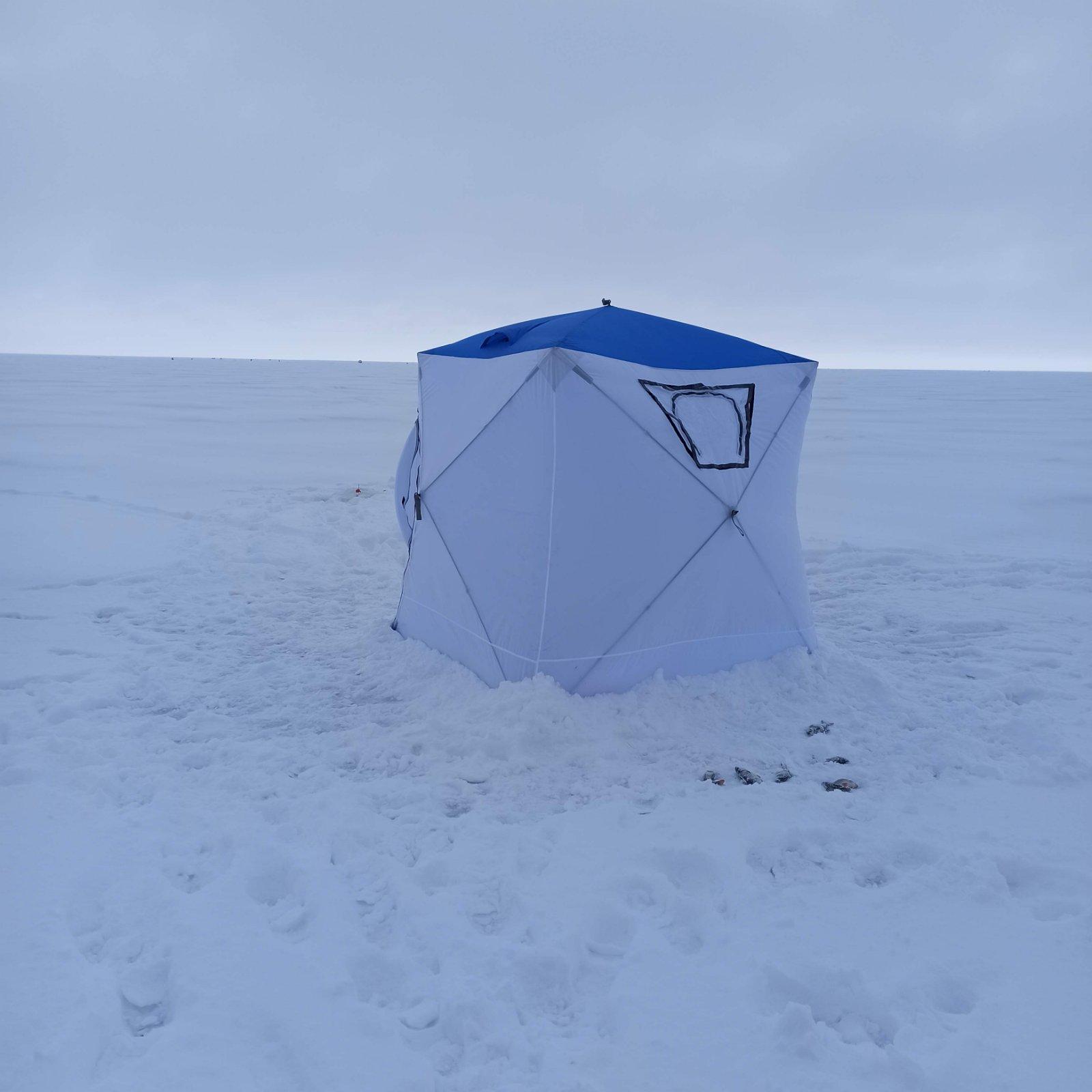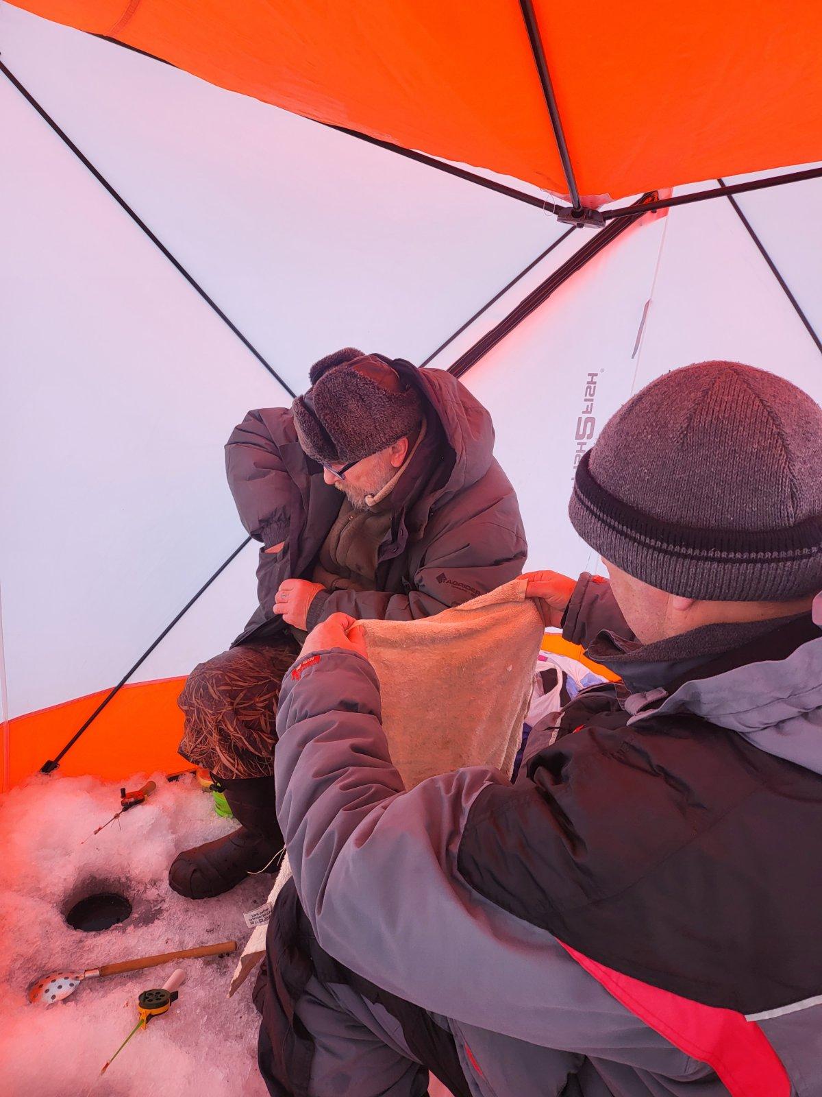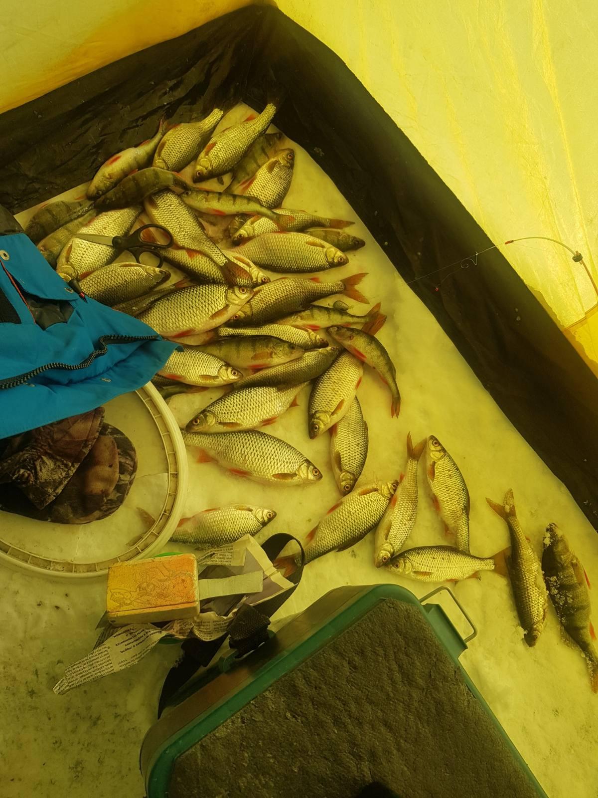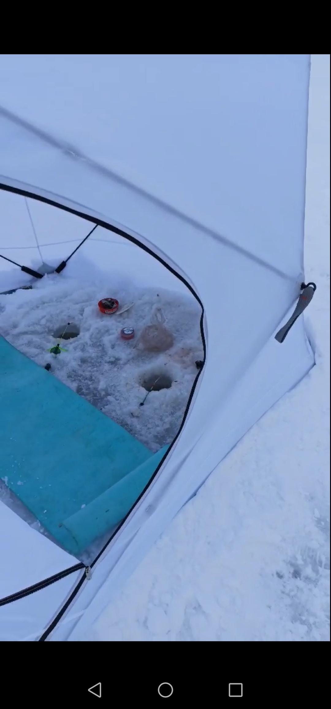 «Приехали на место. Народу мало. На парковке только четыре машины. Морозик конкретный. Палатка лишь у меня одного. С утра кюльмовато. Потом солнышко вышло и даже те, кто без палаток , ловили без рукавиц.