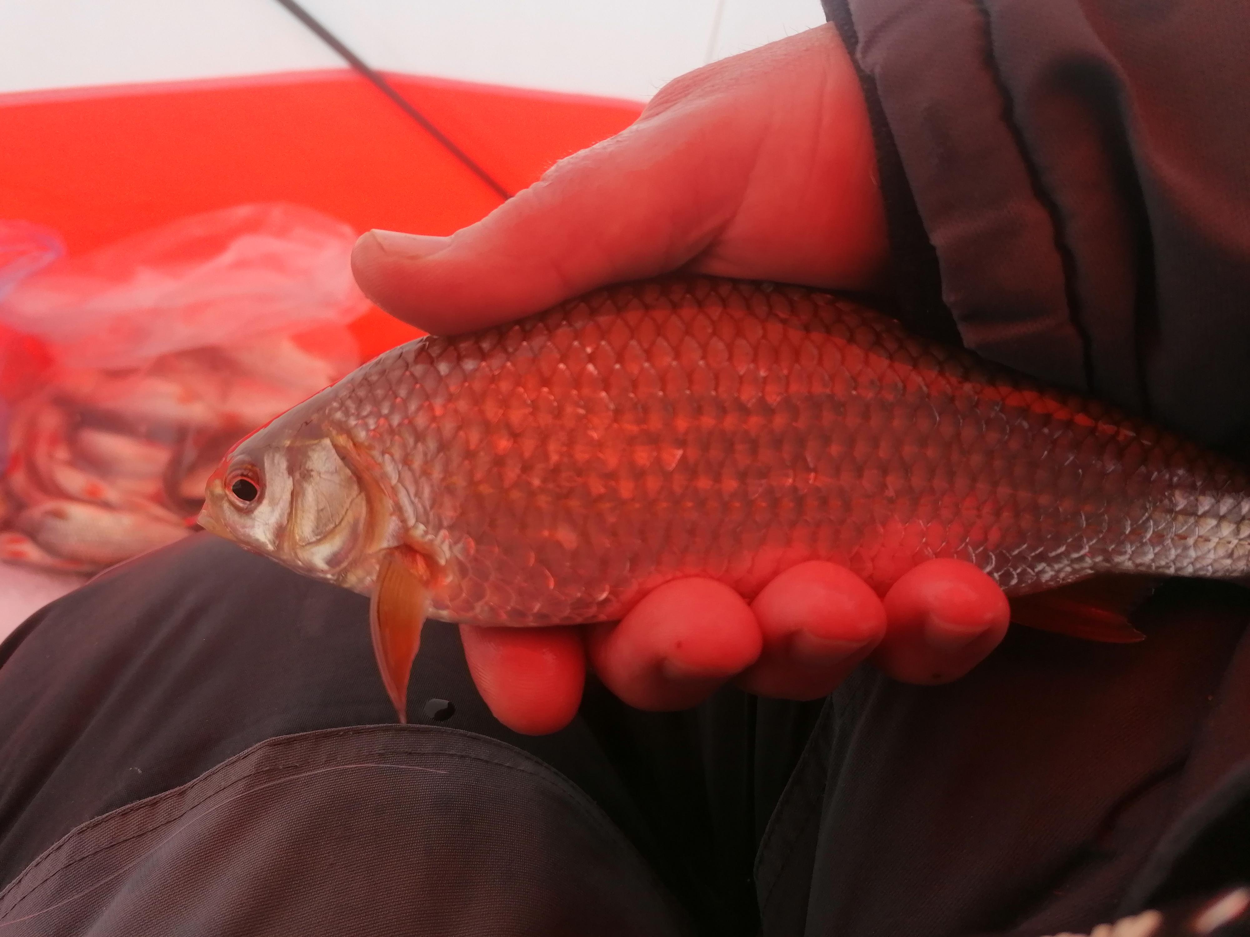 На моментальный созыв плотвы и не рассчитывал, но буквально минут через 7 получил первую поклёвку, а ещё через пару минут вытащил первую рыбину. Размер внушал оптимизм и надежду, что хотя бы килограмма 2-3 удастся поймать ( Да, в пятницу только ленивые не ловили по 12- 15кг., но уже в субботу всё резко изменилось. Не говоря уже о нашем дне. Такие мощные прыжки давления даже уклейке не нравятся, не говоря уже о более серьёзной рыбе. Поэтому эхолот и не показывал стаи).