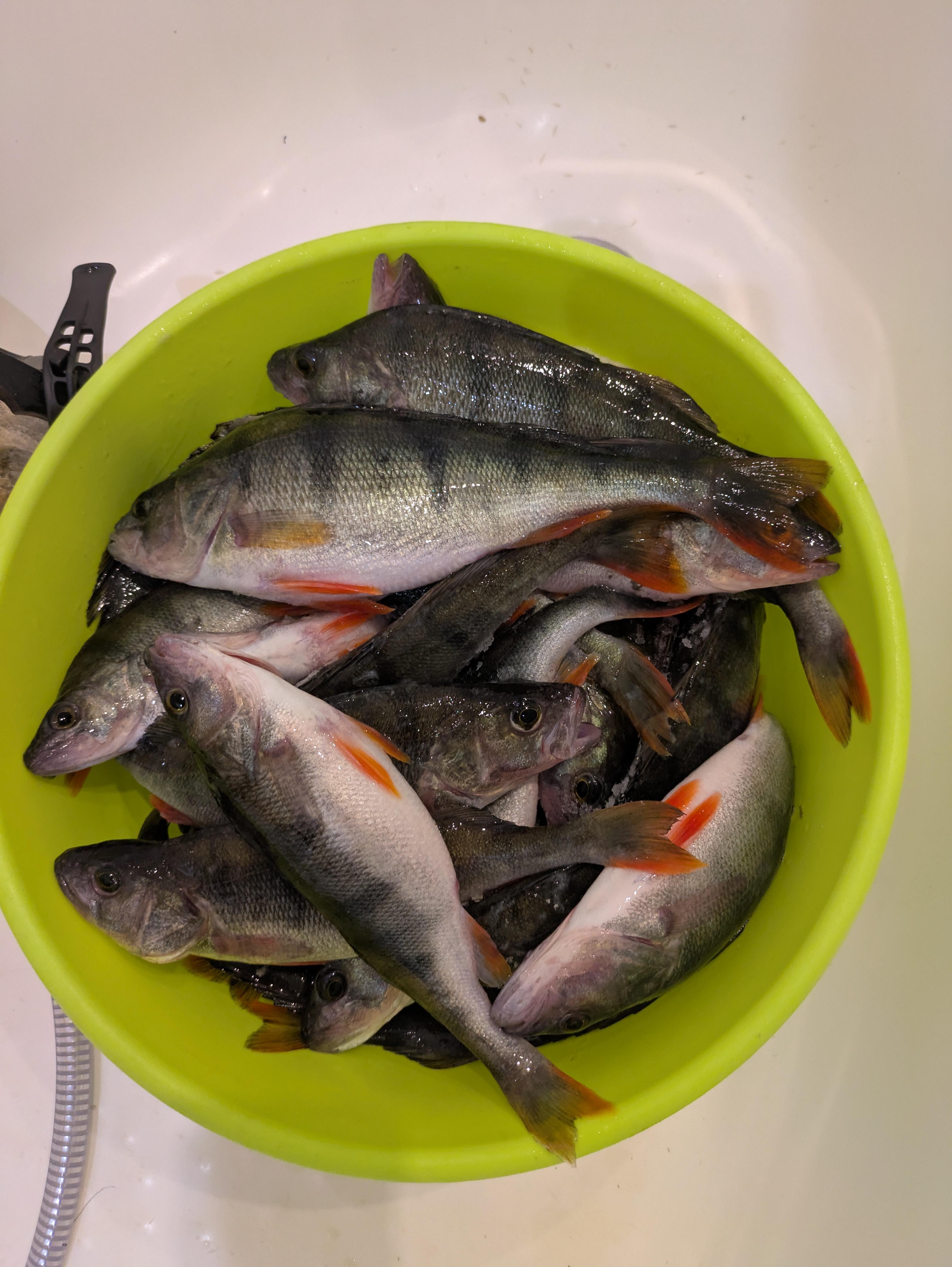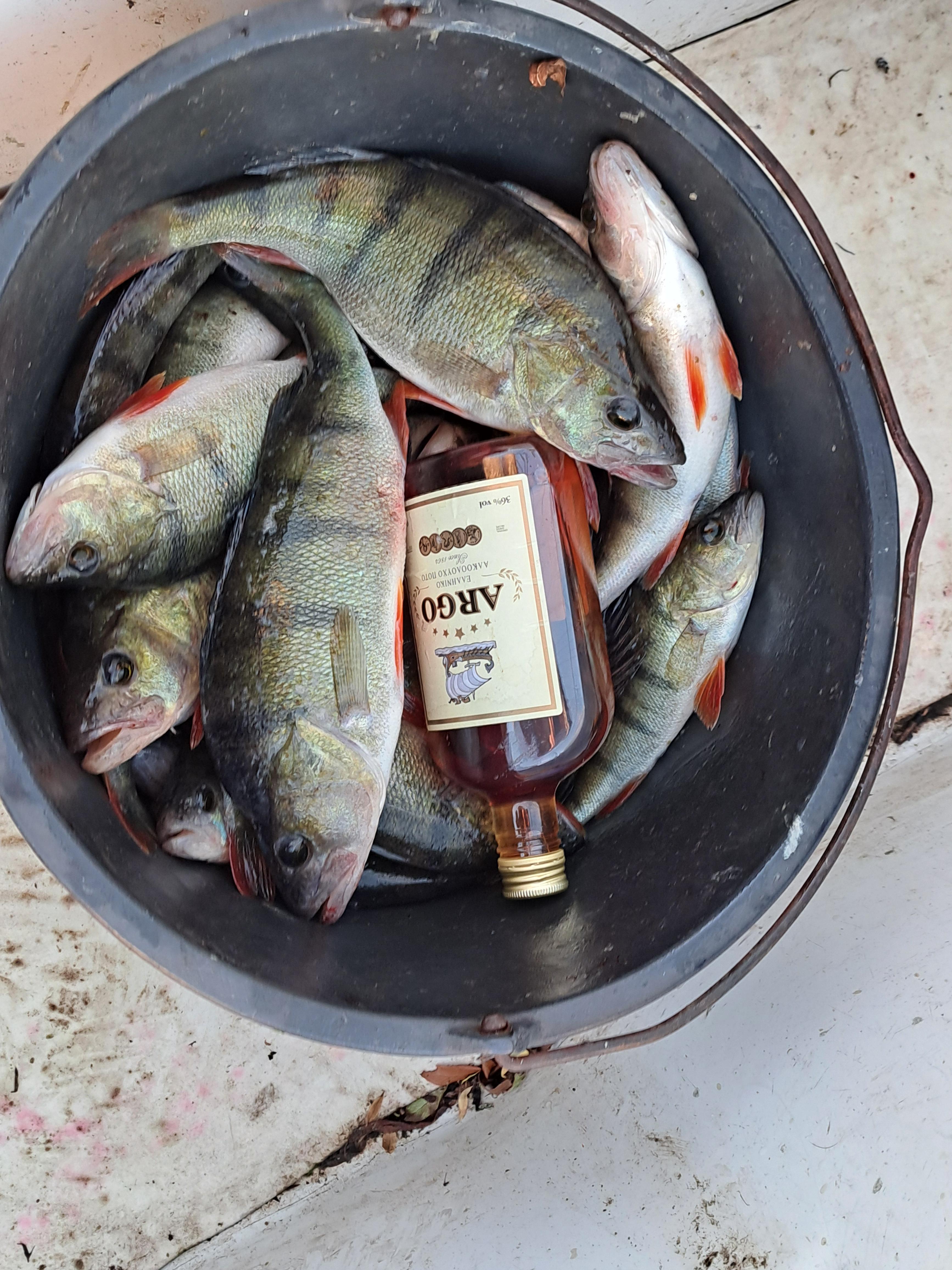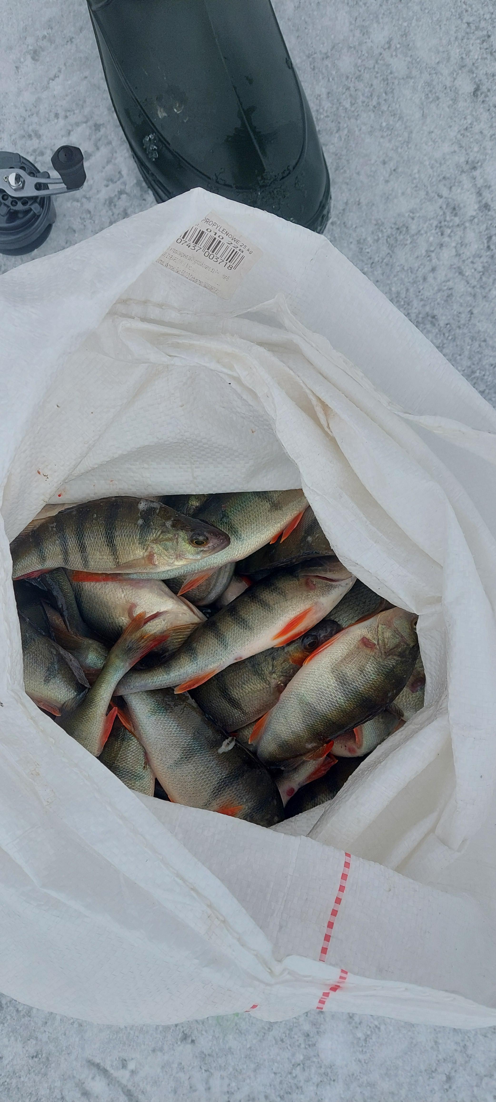 Окунь в среднем 200гр. Улов около 3кг, а может и 4кг. )