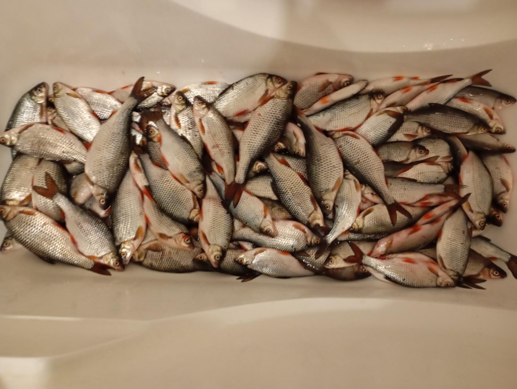 Ловили на пинку и на тесто Трапер с запахом ванили. Очень неплохо оно себя показало. Кормили тоже Трапером, плотва красная. Половину от того, что на фото, утопили. Сортировали жёстко. Но даже среди средней плотвы часто проскакивала очень приличные мамки. Одним словом, рыба достойная. Рыбалкой остался очень доволен. С погодой повезло, да и клев отменный. Домой привёз 14кг очень приличной плотвы.