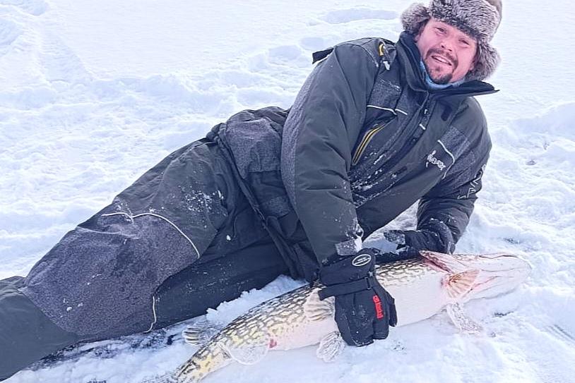 И вот она заветная лунка. Ну и конечно, эмоции. Еще и еще. Ребята собрались покучнее, рыбка начала себя проявлять. Настроение, естественно, тоже. Ну, а потом, друг и тишина. Сместились в сторону, И вот она УДАР. Не просто удав, а БАБАХ. Началась борьба и сознание того, что на том конце, серьезный противник, а на катушку, 0- второй флюр. Средний Врунгель, как можно спокойнее, попросил младшего подать багор о оказать помощь в качестве ассистента. Молодой рыбак, первый раз в такой ситуации, а багор, вообще, первый раз видит. Но фортуна в этот день бала на стороне молодежи. Вытащить эту особь щучьей наружности через сто двадцатую лунку, еще, то удовольствие. Когда мне, как эксперту прилетели эти фотки, я упал с дивана. Ват это, половило рыбки.