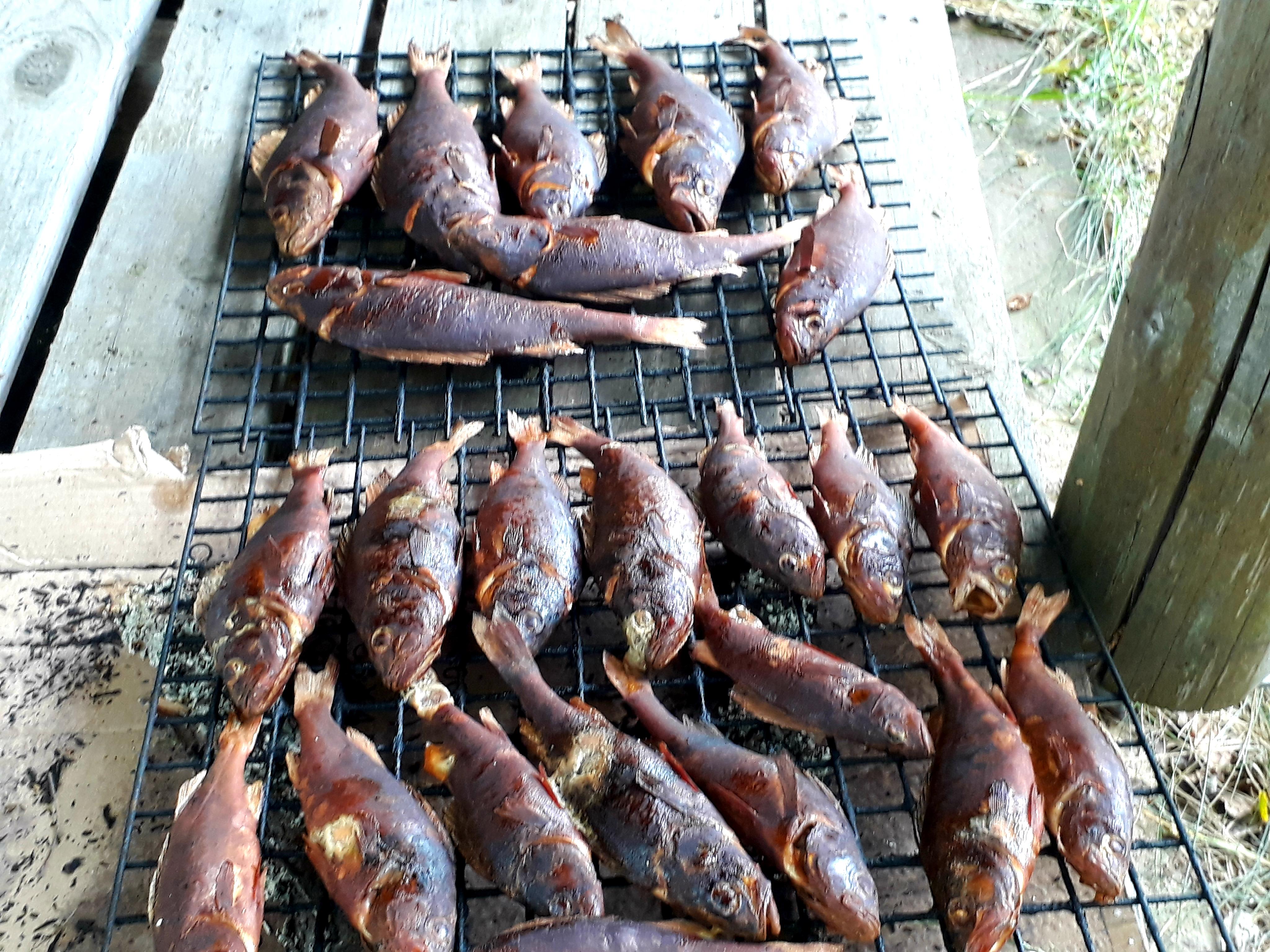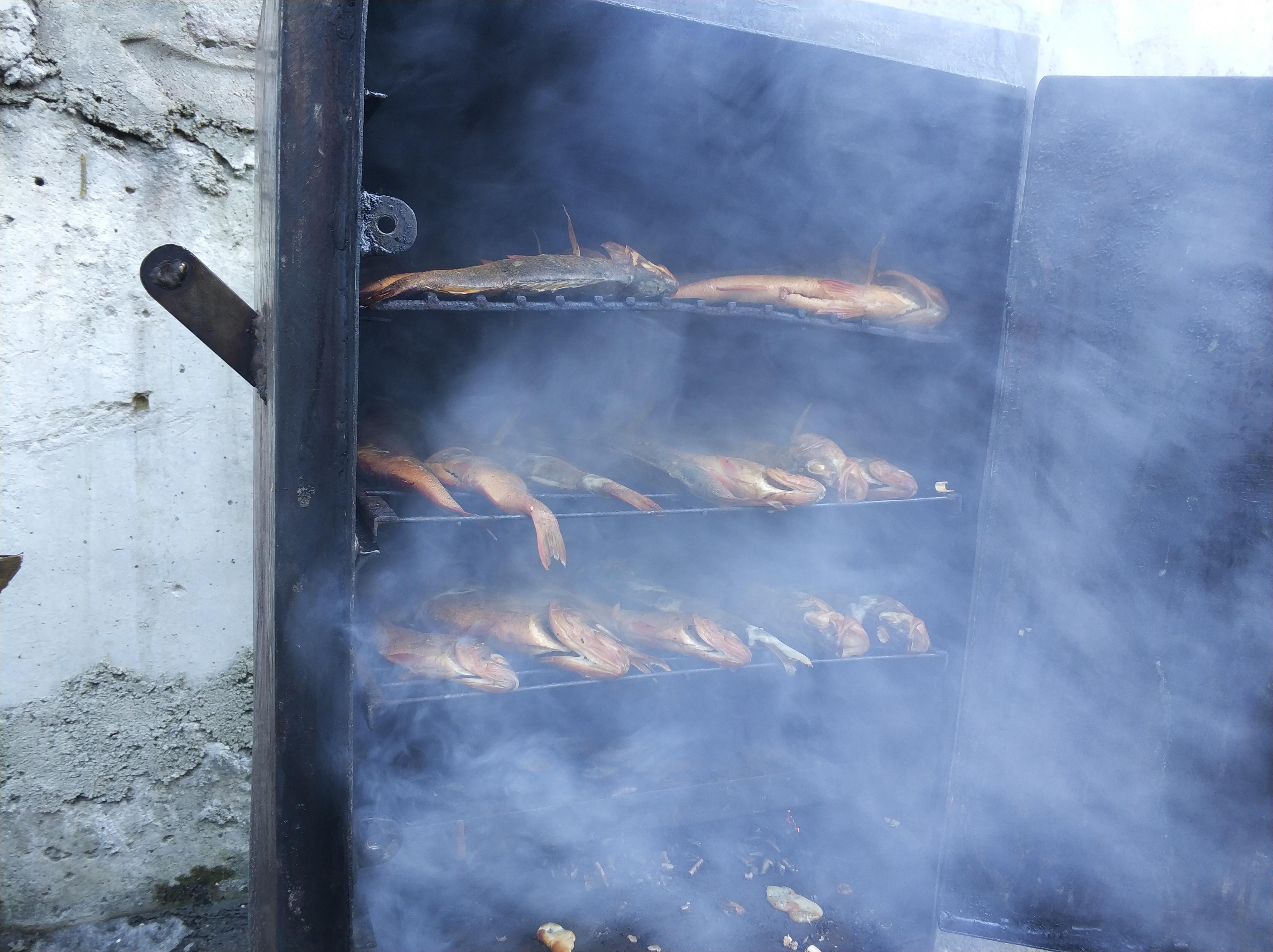 Согрелся у печки, а на остатках углей можно и рыбку покоптить.