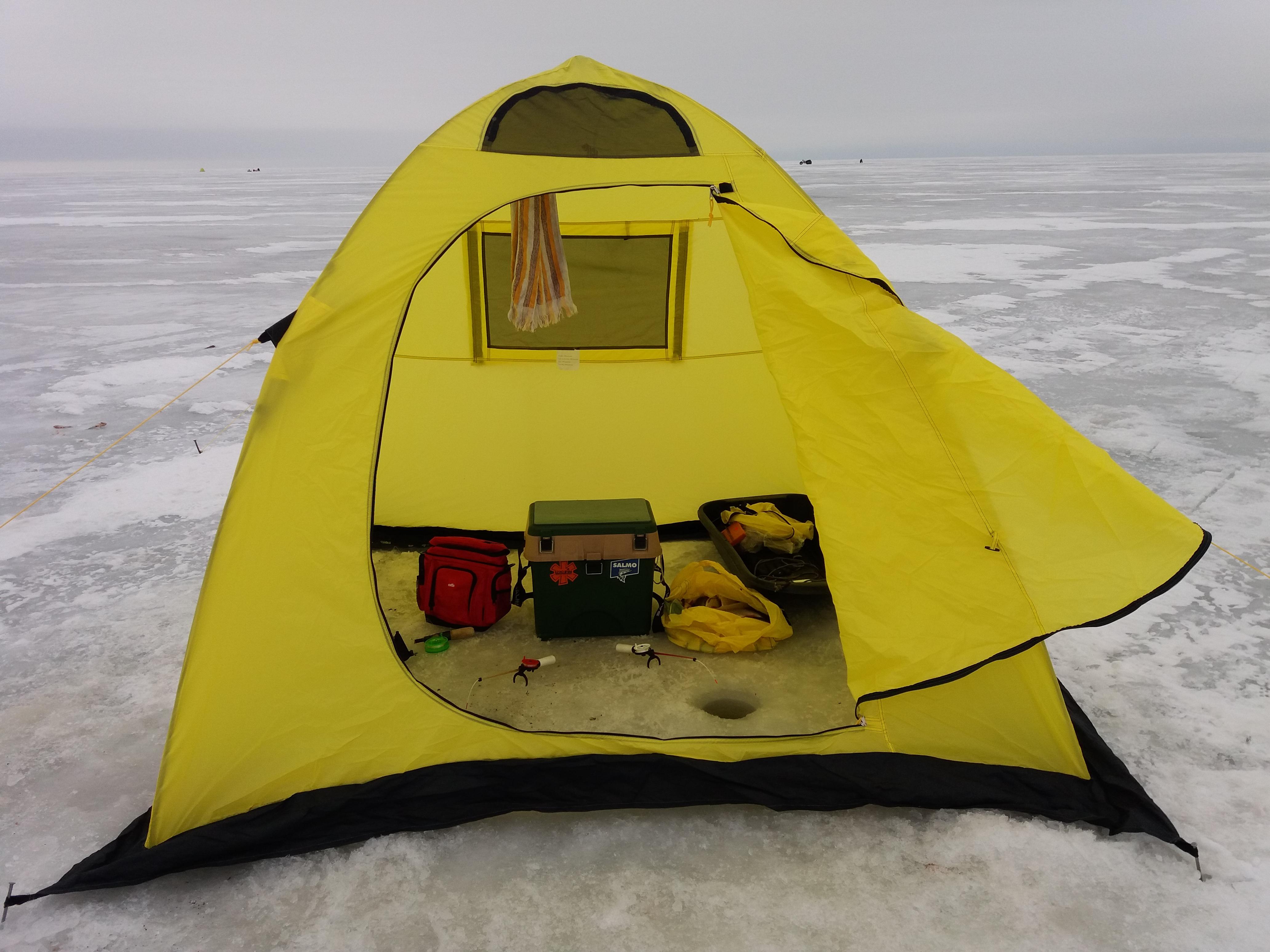 У меня старый вариант 2.10х2.10. Помещаюсь сам со всем скарбом ( а у меня его немало ) и с тремя, иногда ( если надо закормочную ) с четырьмя лунками.