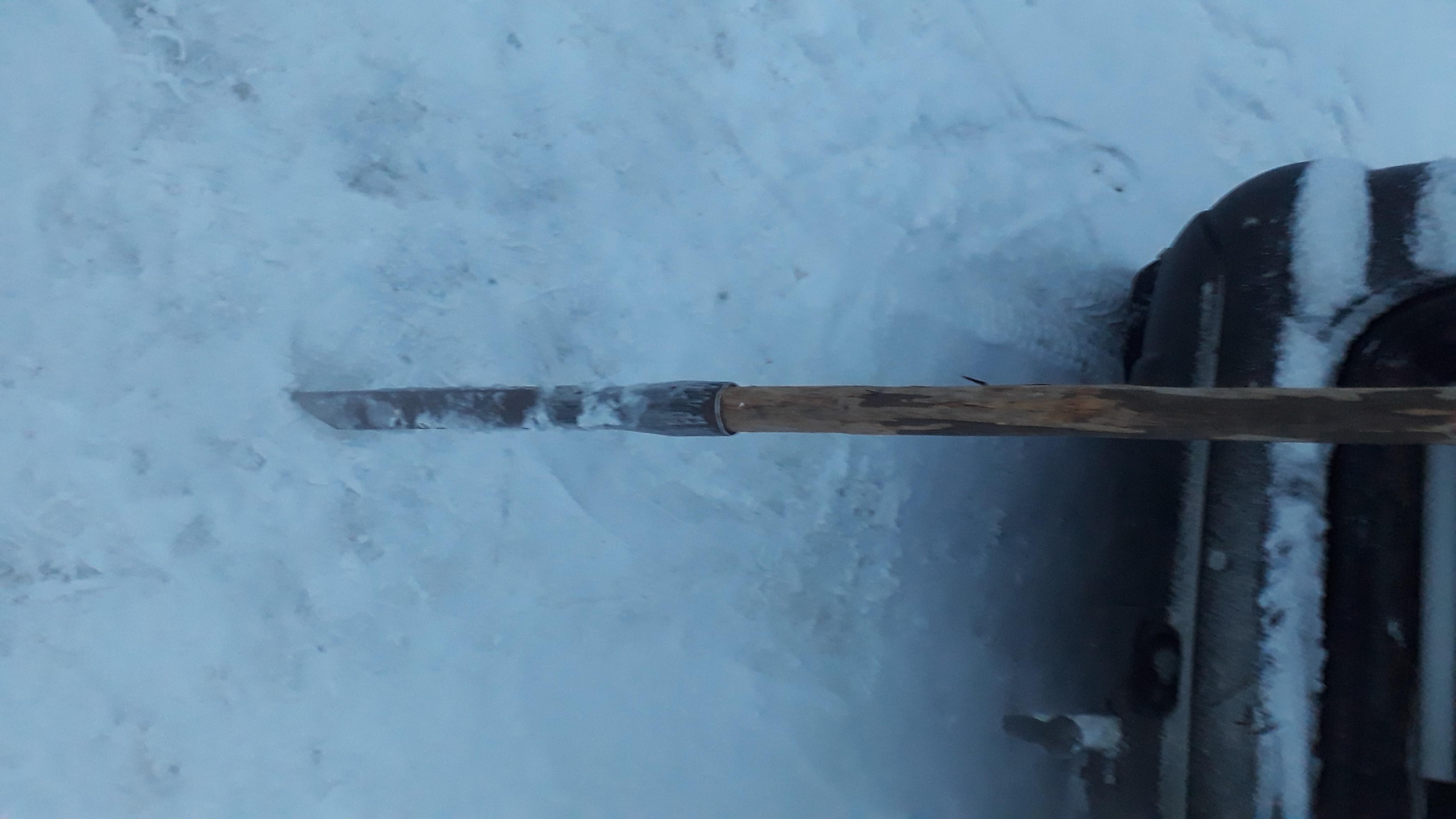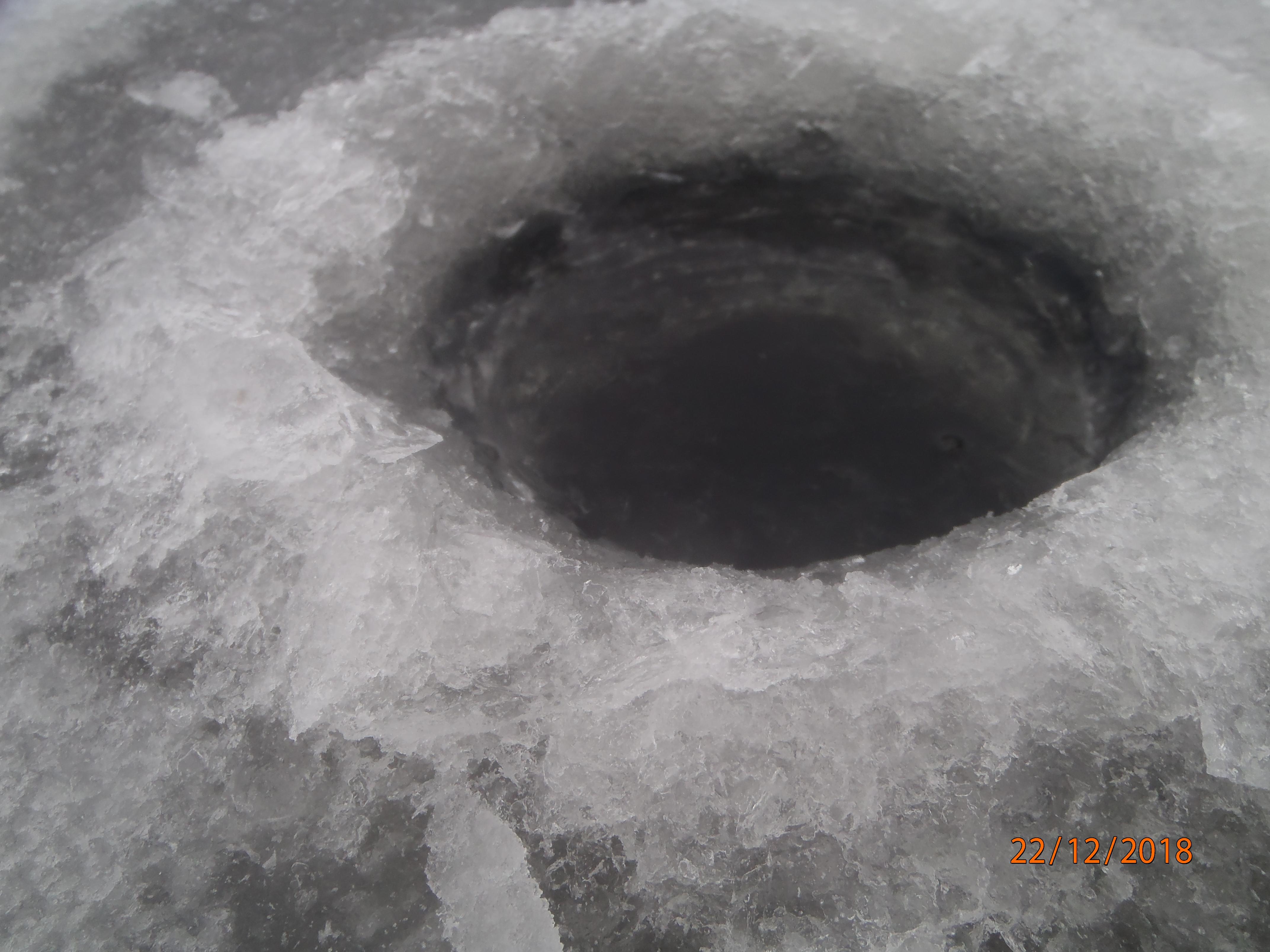 KajurУчастникПервую лунку сделал в этом поле с торосами на полянке 2*2. Вроде и берег вот он, недалеко, но по навигатору было 2 км. Глубина метра три, посидел, ни тычка. А цель, заломчик, был уже недалеко. Поле с ледышками кончилось, впереди ровная поляна, до залома метров триста. Вот где моя рыба!😃 Постучал пешней по полянке, нормально. Взял бур, три — четыре оборота и лунка! Ни хрена се! Замерил лед — ровно пачка сигарет, 9 см!