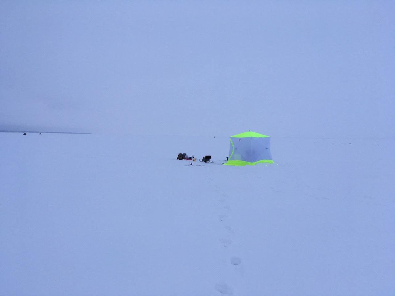 С утра на льду человек 20. В основном все в палатках. Кое кто ушёл за заломы на втором километре ,ищут окуня.