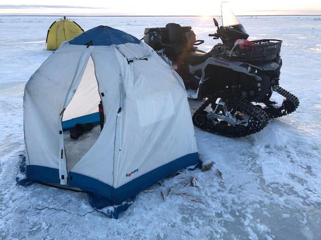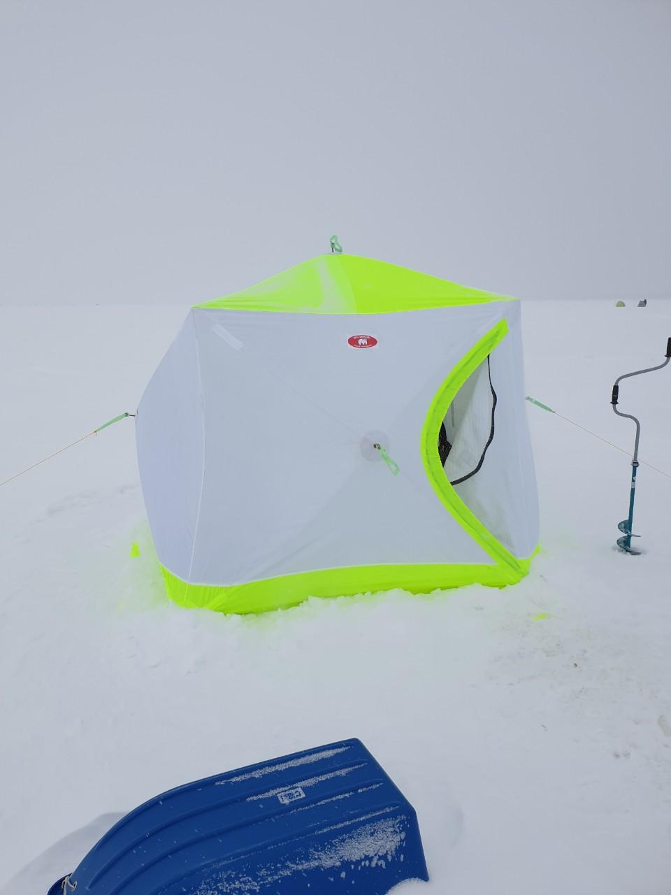 После полуторачасовой беготни послали всё и всех на и решили таки палатку разложить. Какая разница , ГДЕ он НЕ ЛОВИТСЯ, в палатке или на морозе?? ))