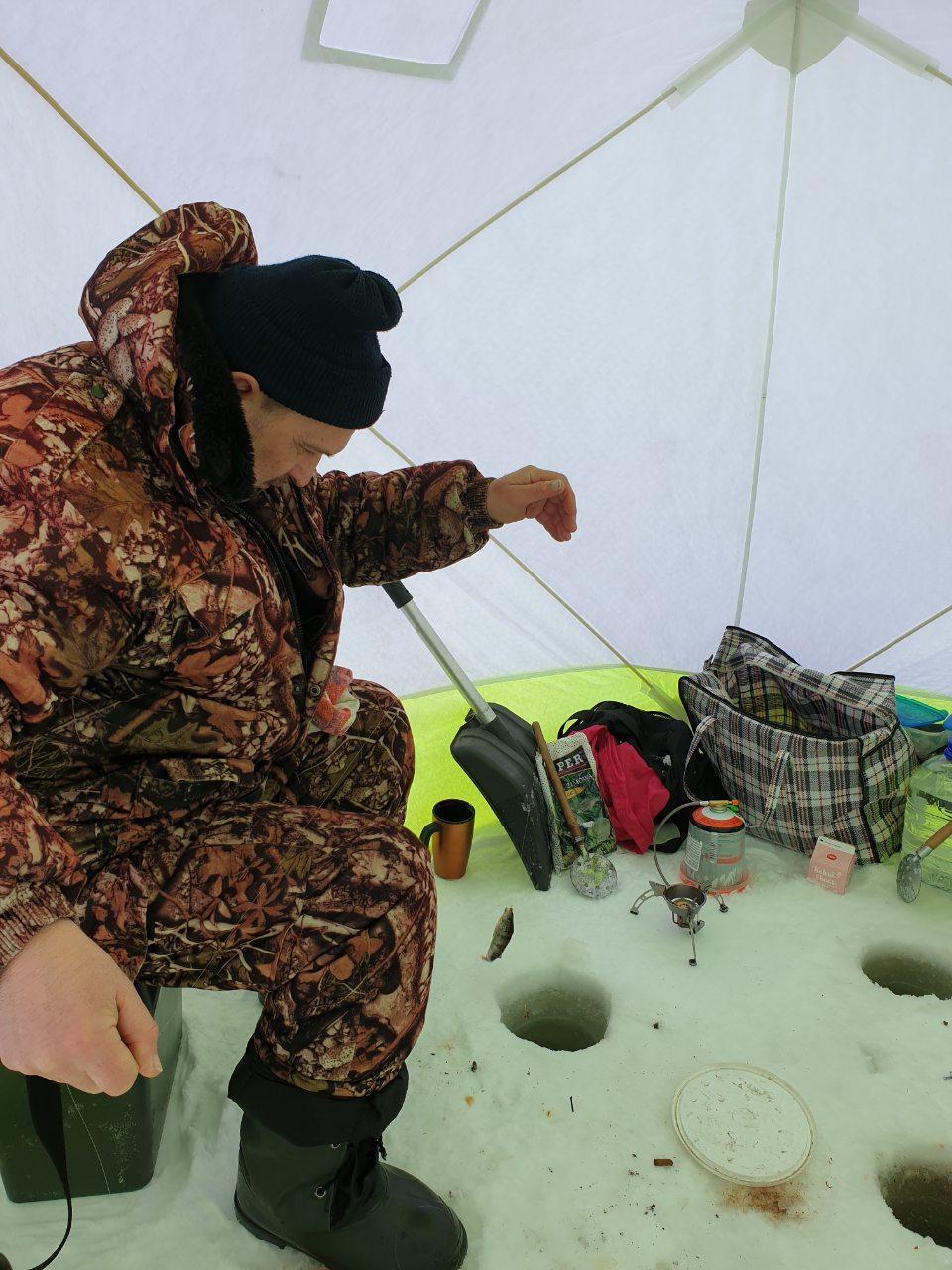 Странное дело….Как только рыбаки согрелись, окунь стал клевать. Некрупный, но всё таки. ))