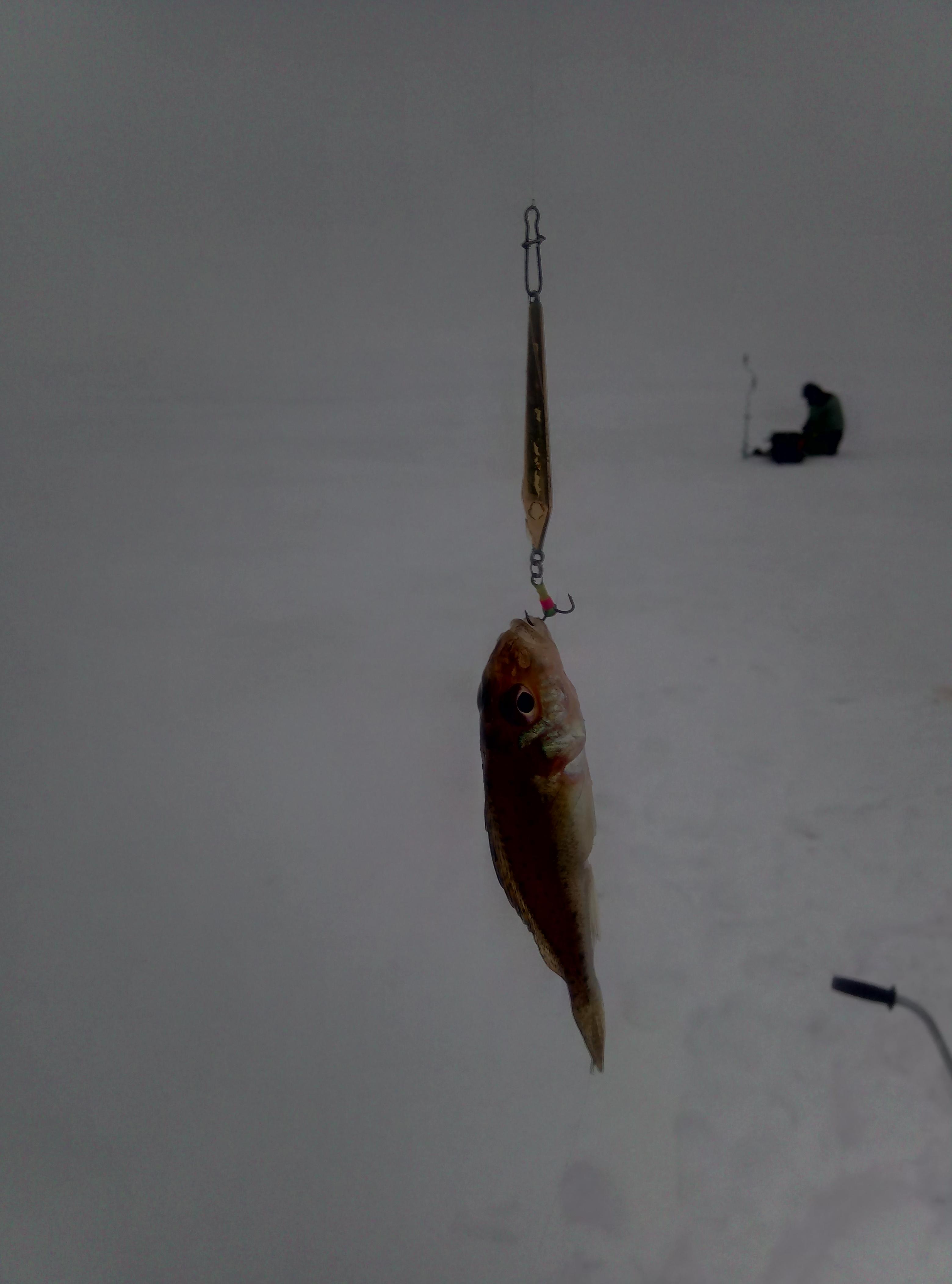 Те, кто пошли в толпу и ловили на мормышку остались почти без рыбы. Единичный и мелкий окунь плюс несколько плотвиц.