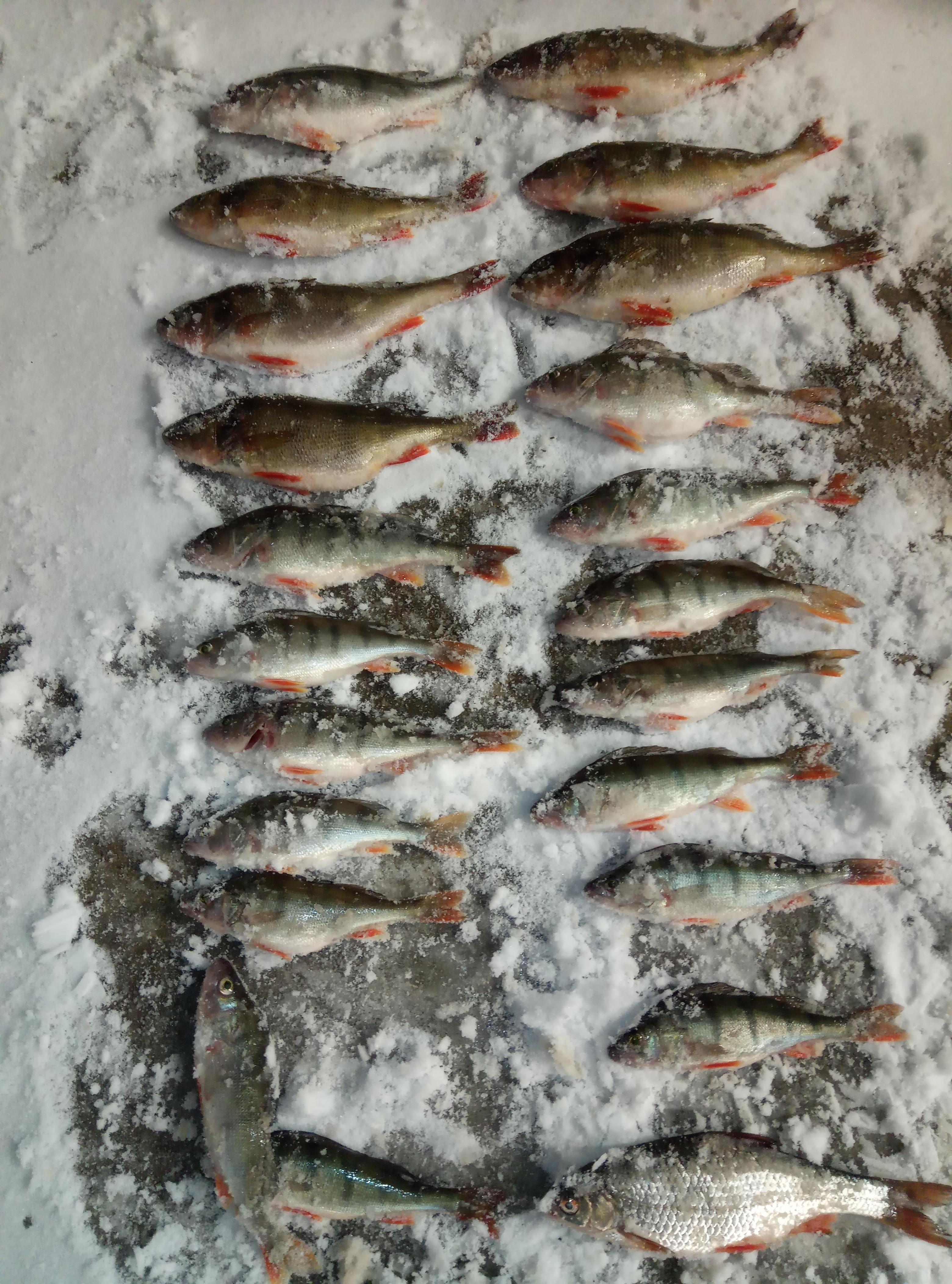 Те же, кто сдвинулся левее общей массы , рыбу свою нашли. Немного, но кила 3 на человека взяли. Мелочь, разумеется не в счёт. А её как мышей в сельском амбаре. Однако, был и бонус ( не помню уже 490 или 460 гр окуняра ), да плюс ещё двух не подняли ,а приложили головой об край лунки. Штук 5-6 двухсотграммовиков.