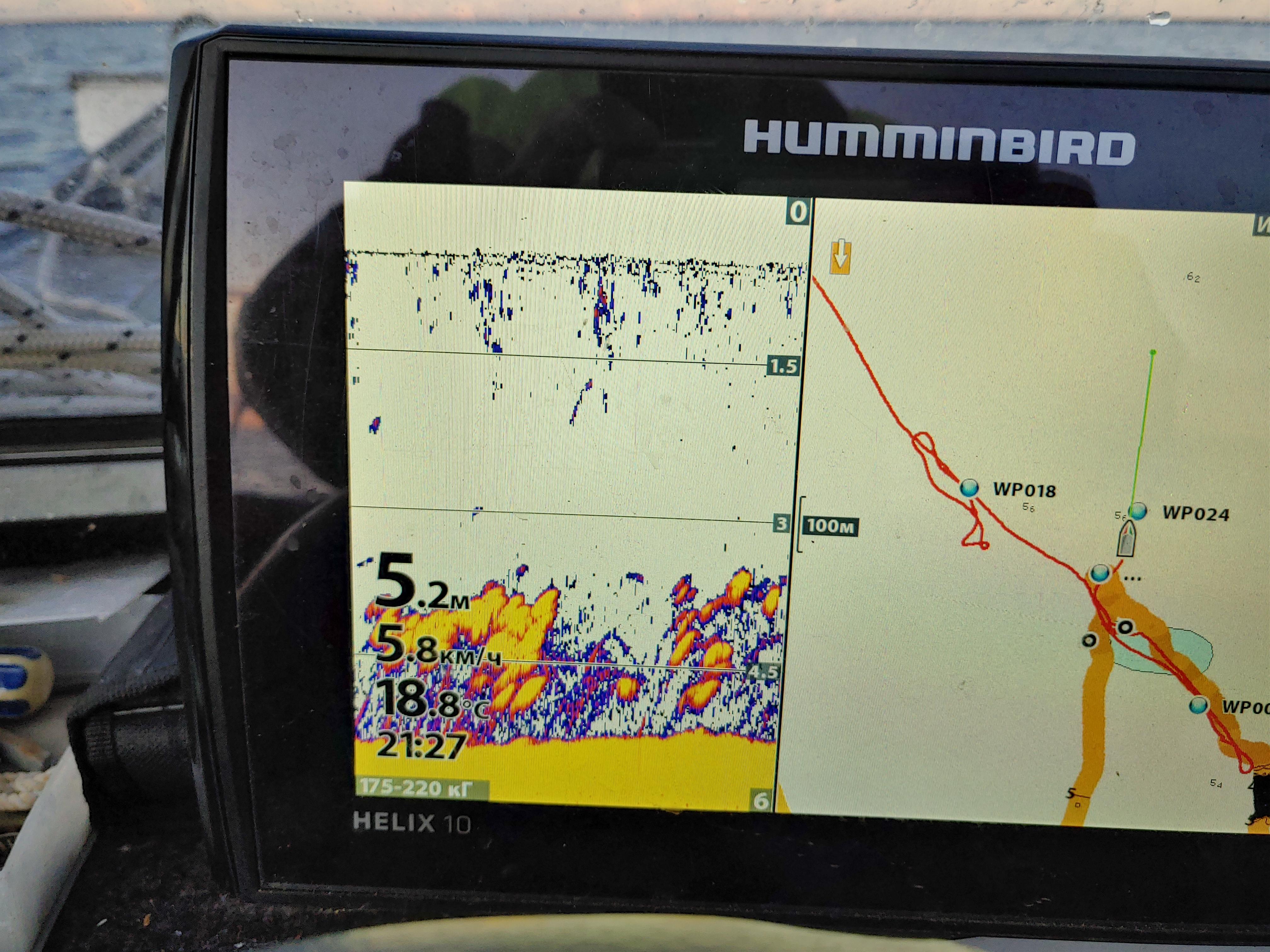 Такая рыбалка не устраивала и решил прокатиться по старым точкам, которые давно не обследовал. И к удивлению на первой же точке не рельефе эхолот показал окуня. Первые забросы это подтвердили… Сначала размер был не очень ходовой, 150-250 грамм. Потом немного расклевалось и один из десятка стал влетать 500+. Клюет неактивно, в основном на падении приманки на дно просто берет ее в рот. Думаю на отводной поводок можно было натаскать мелочи с горкой. Но это не мое.