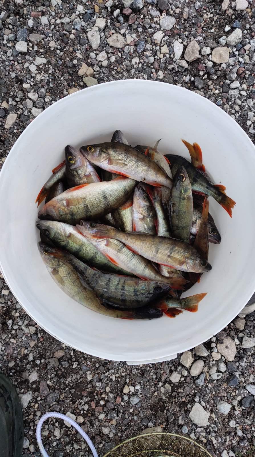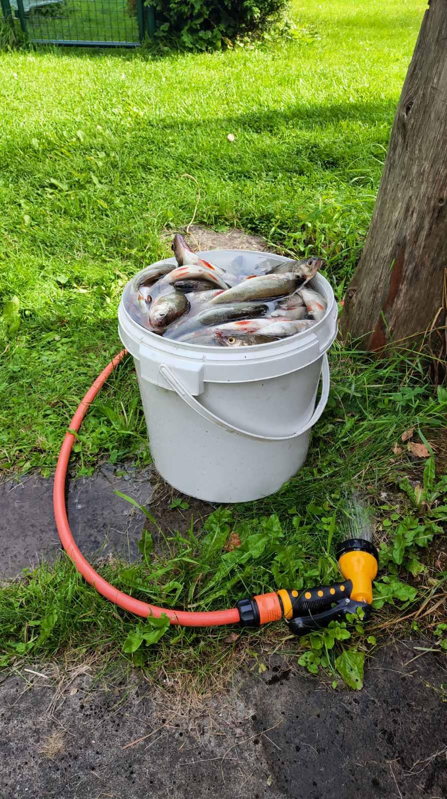 Рыбу всю сортировал. Отпустил навскидку больше десяти кило. Взял 12 ( ведро и пакет).