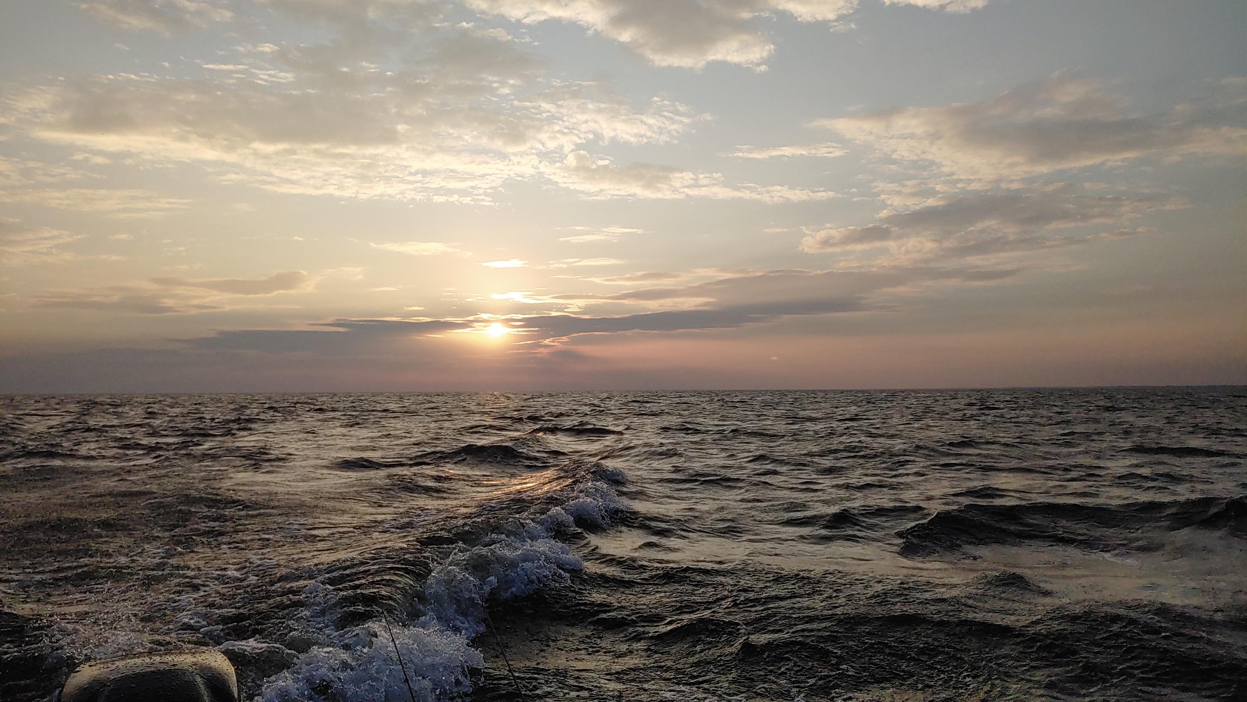 Вечером приличная болтанка была, ветер до 12мс. Отошли только 1-1.5км. Вдвоём поймали штук 20 мелочь 70-100гр. Всех за борт. В берегу крупной рыбы не было, а дальше в озеро не выйти.
