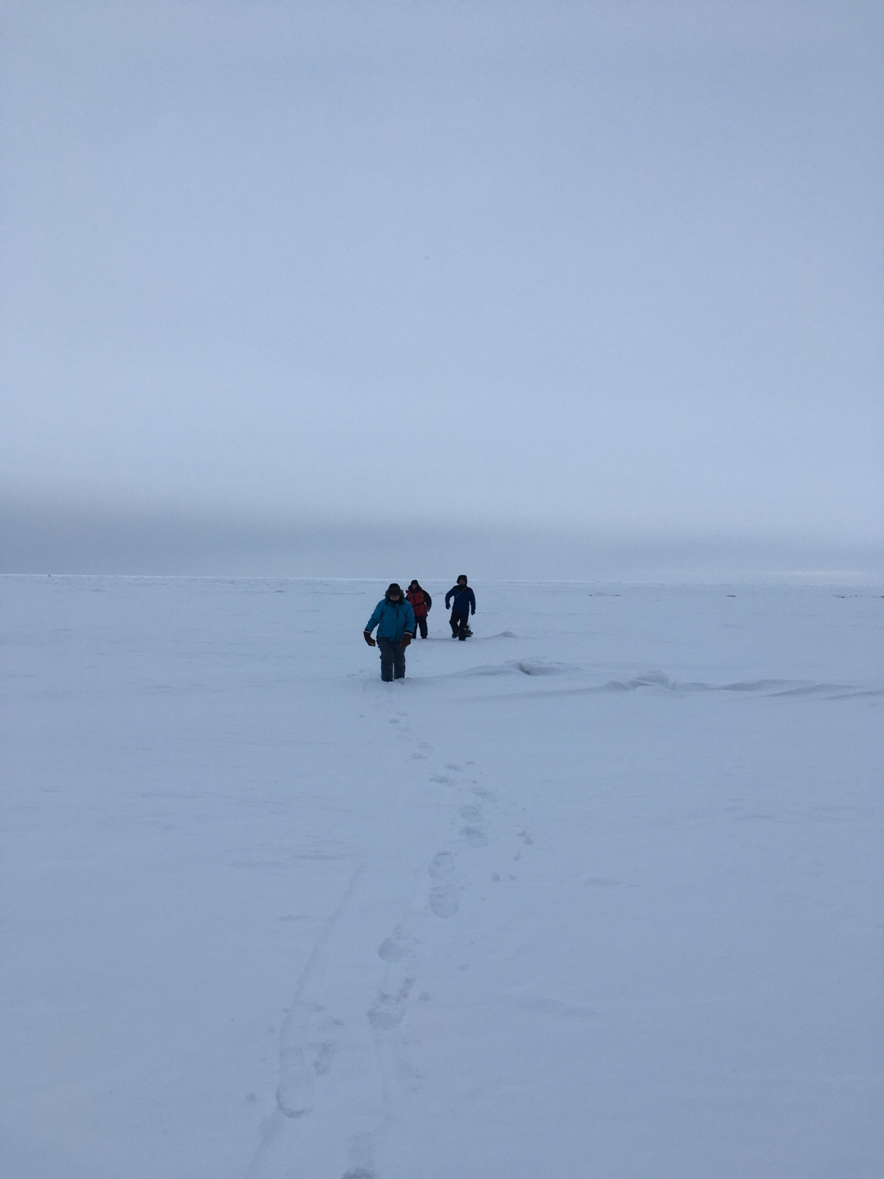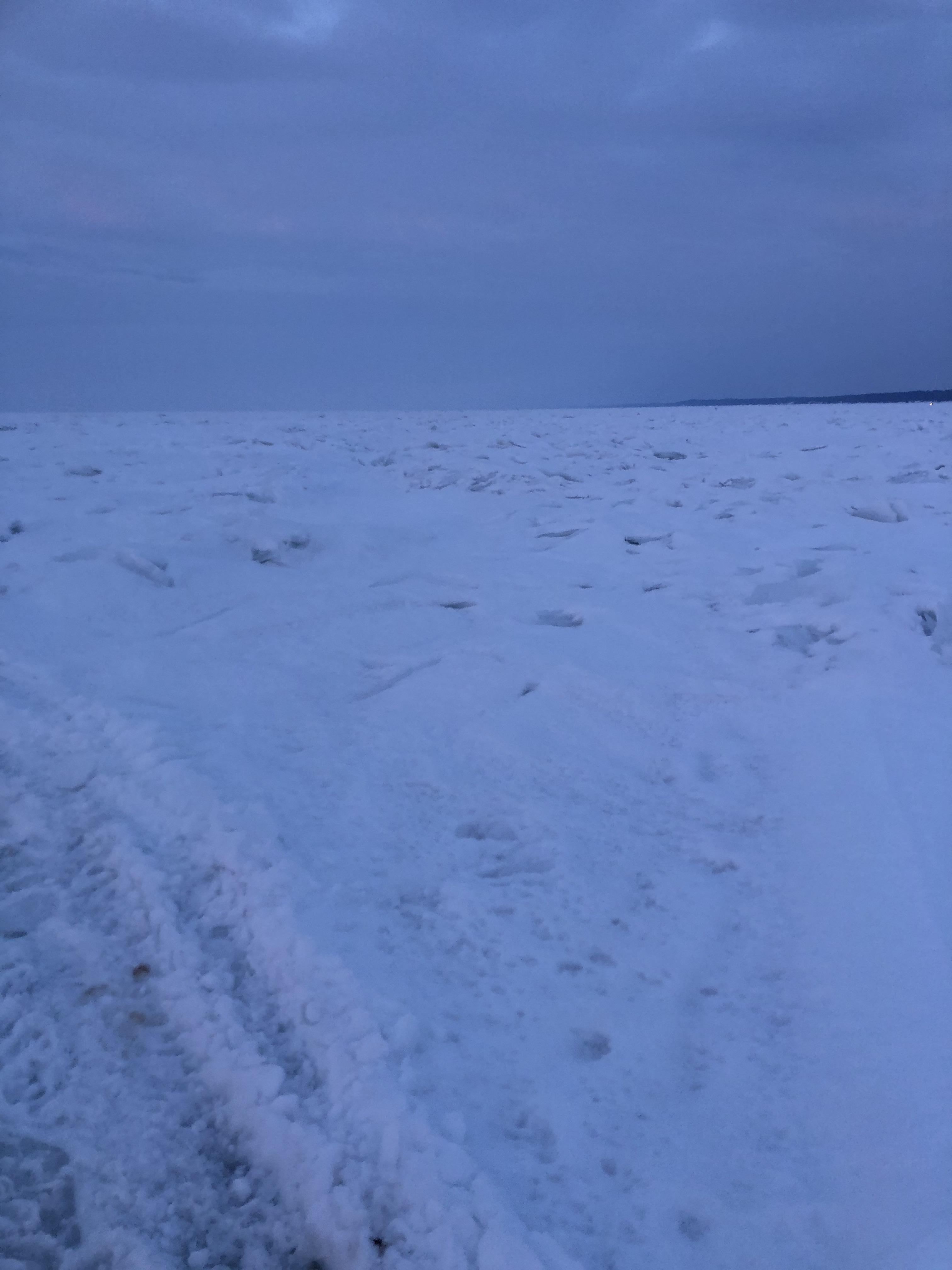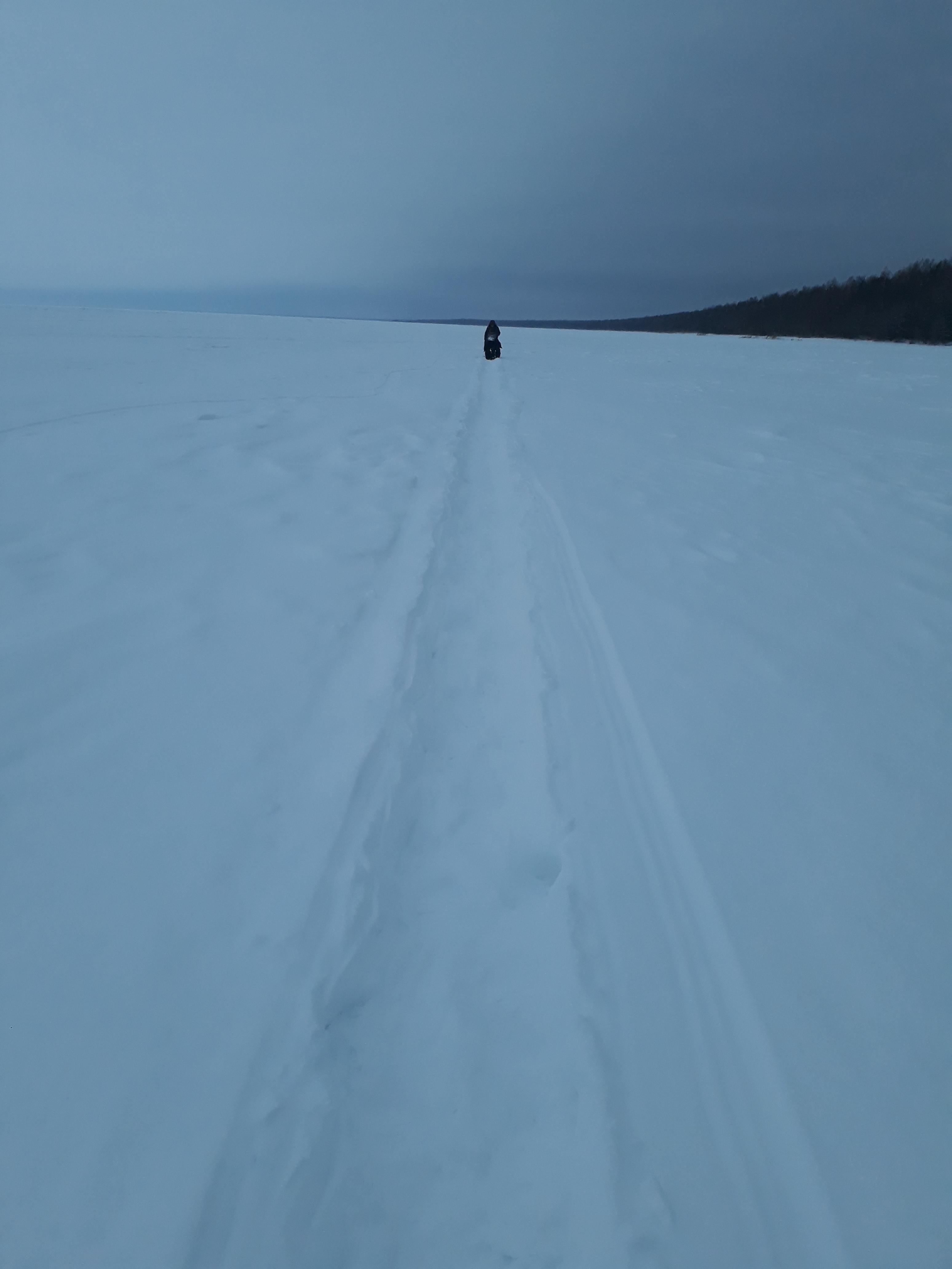 «Были втроём в субботу чуть правее Раннапунгерья. Ушли на 3 км. Снега много, ход не очень, особенно нам, не привыкшим к торосам Чудского озера.