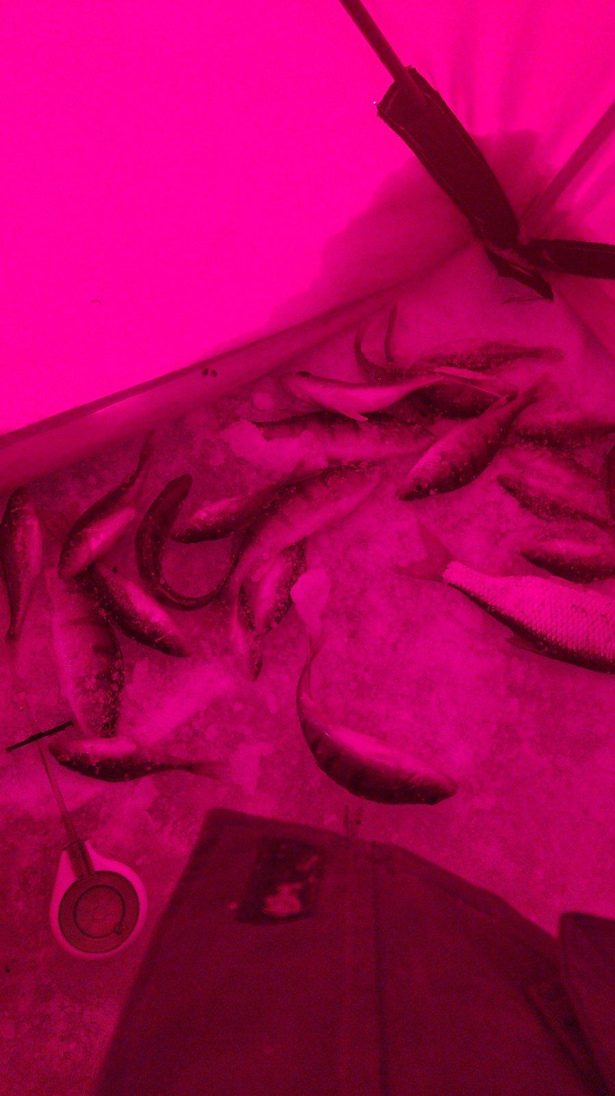 .. мы забрали левеее, где в течении часа поймал только одного окуня, после звонка Кирилла, что поклевывает , сместился правее, и дело пошло.. ..поймал так же штук полста, не считал, пара почти бонусов 250 и 300 гр