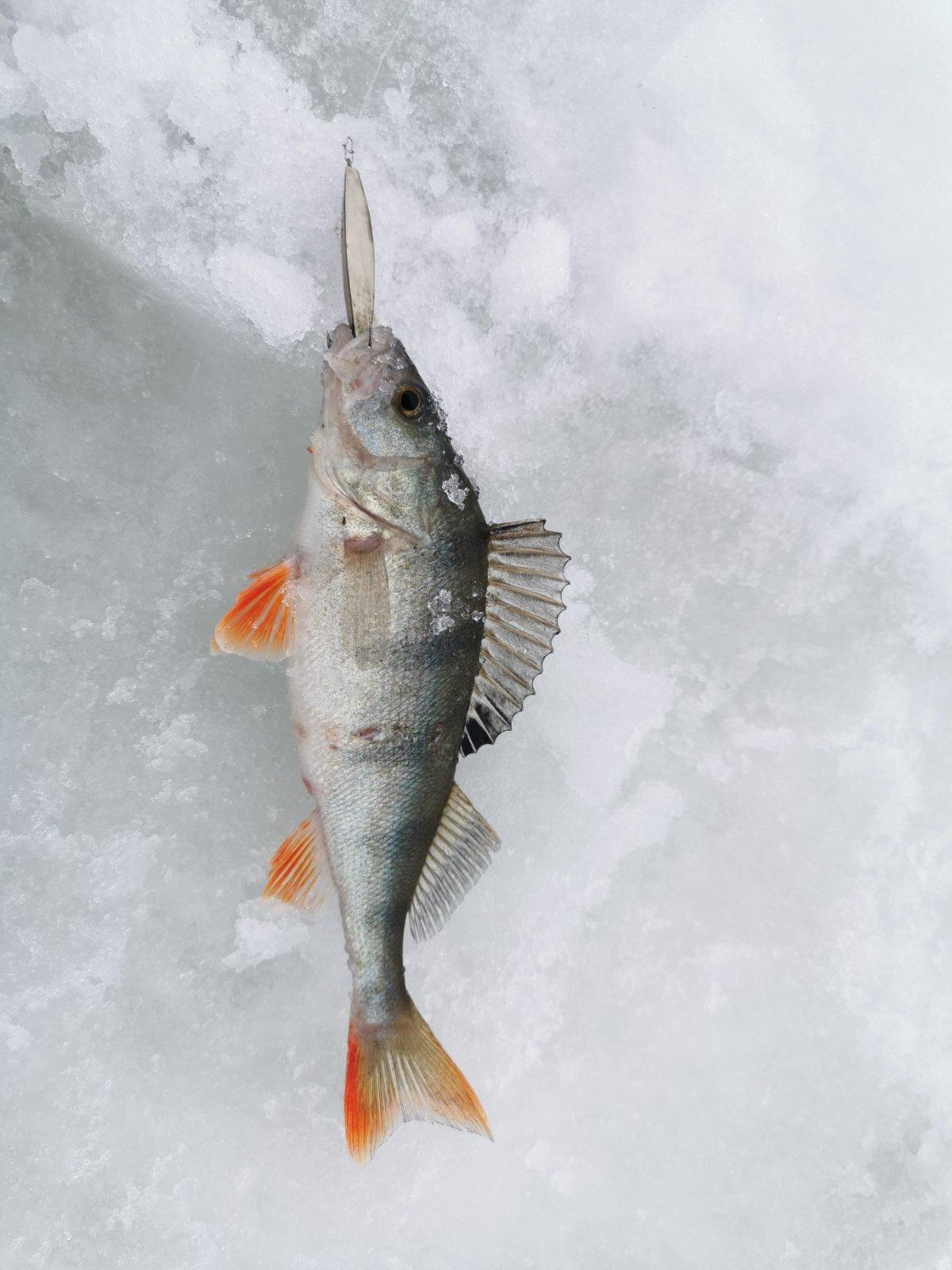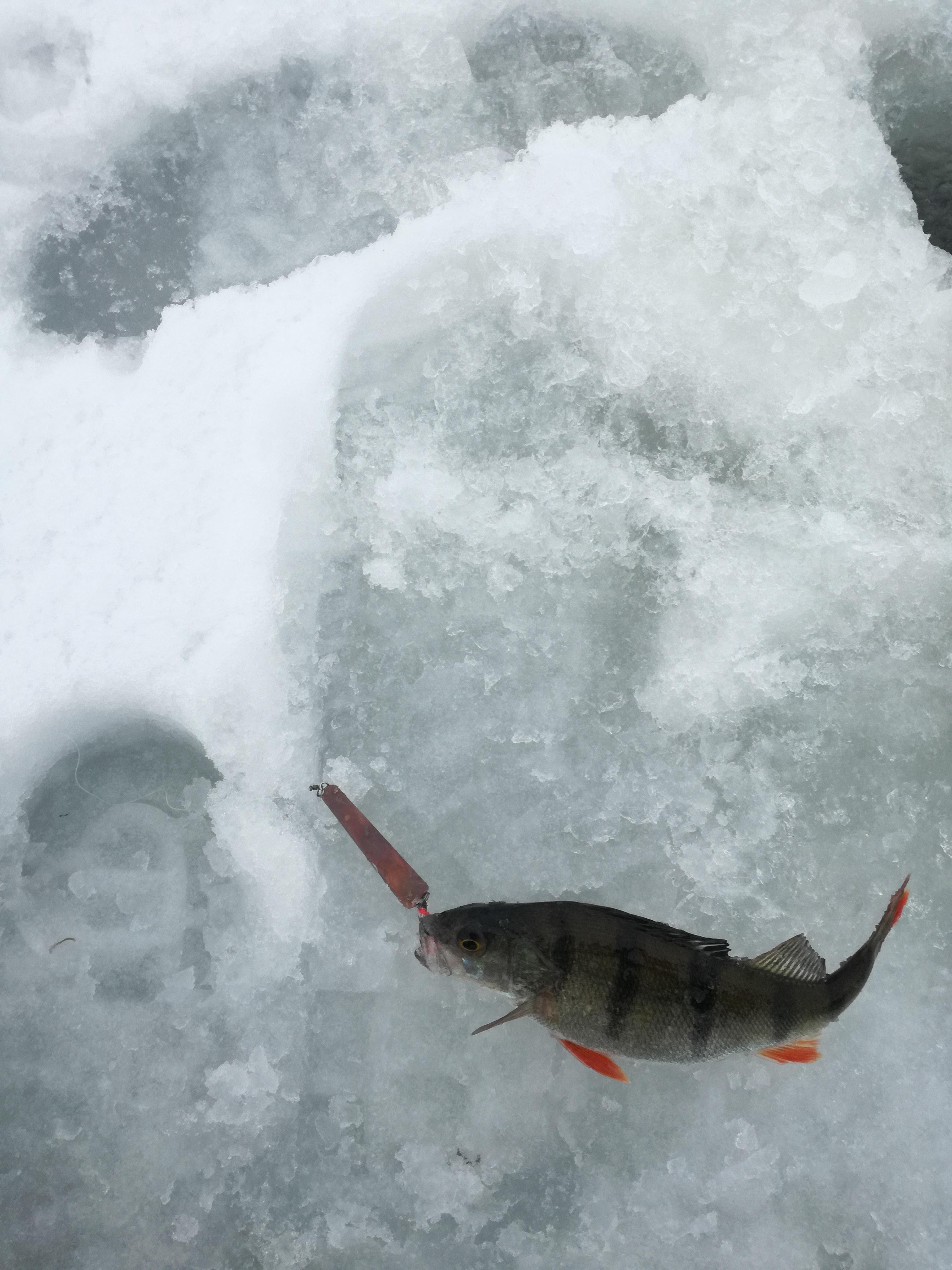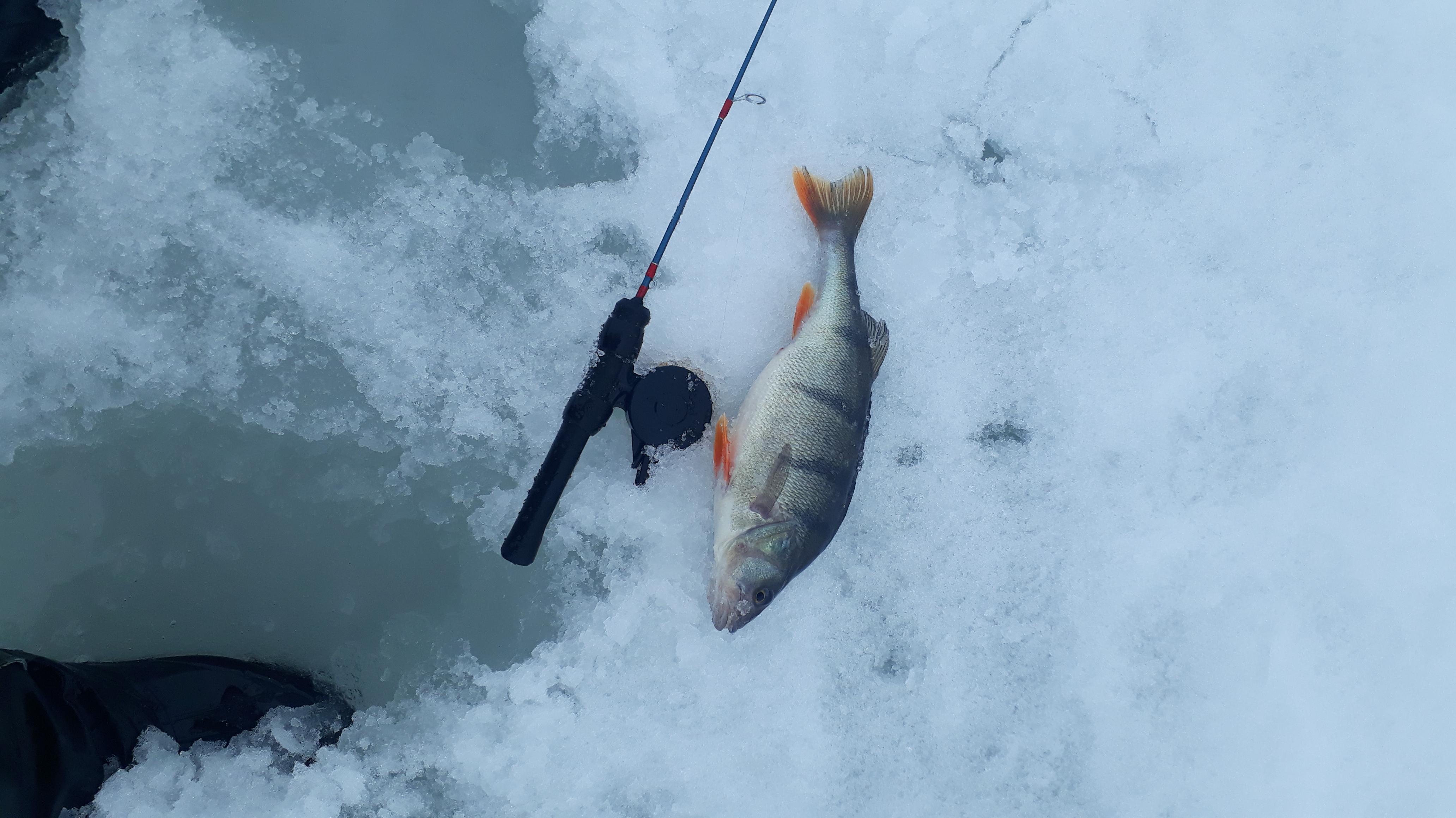 Окушек с утра поклевывал, но мелкий, почти все в лунку.