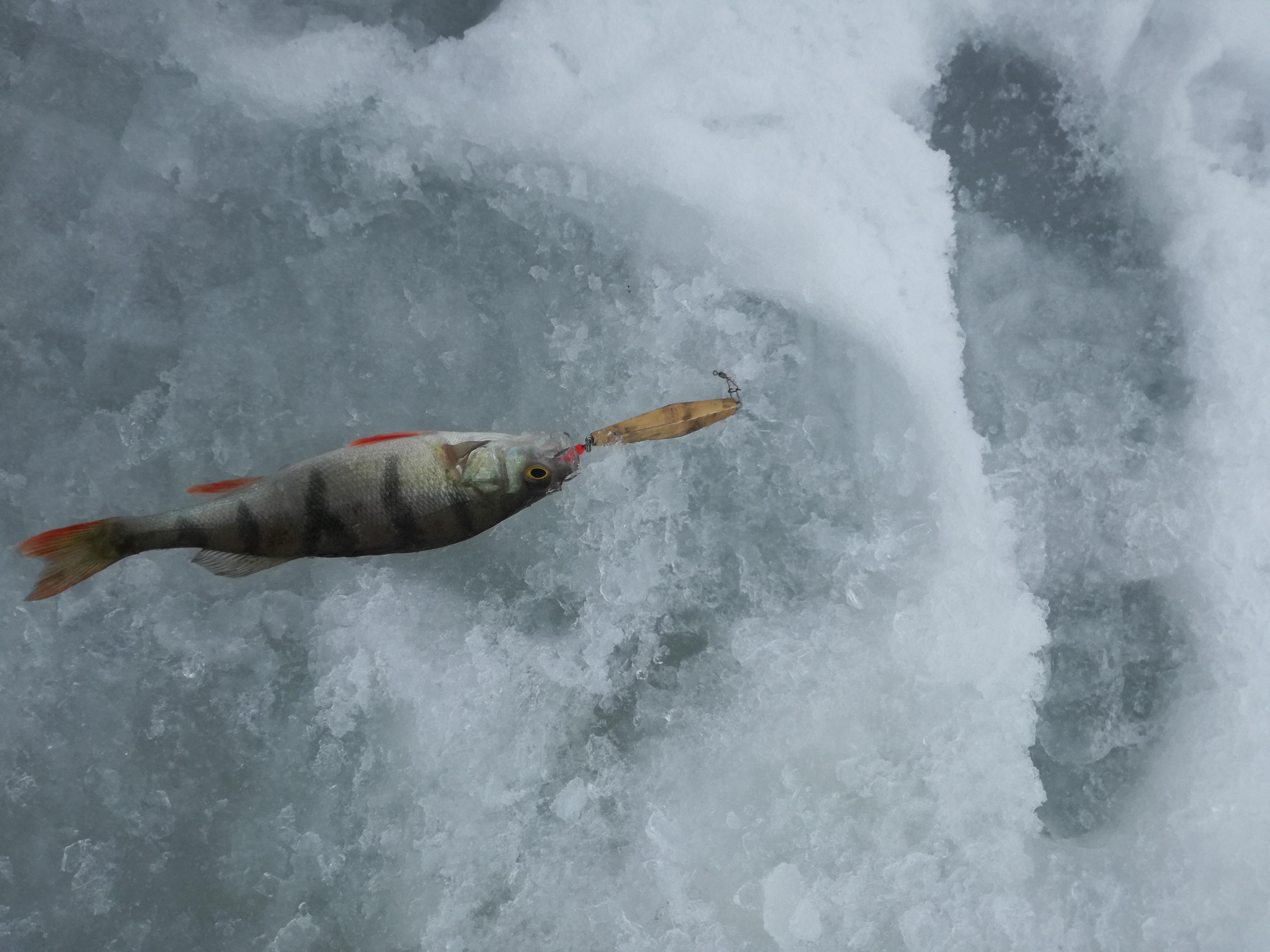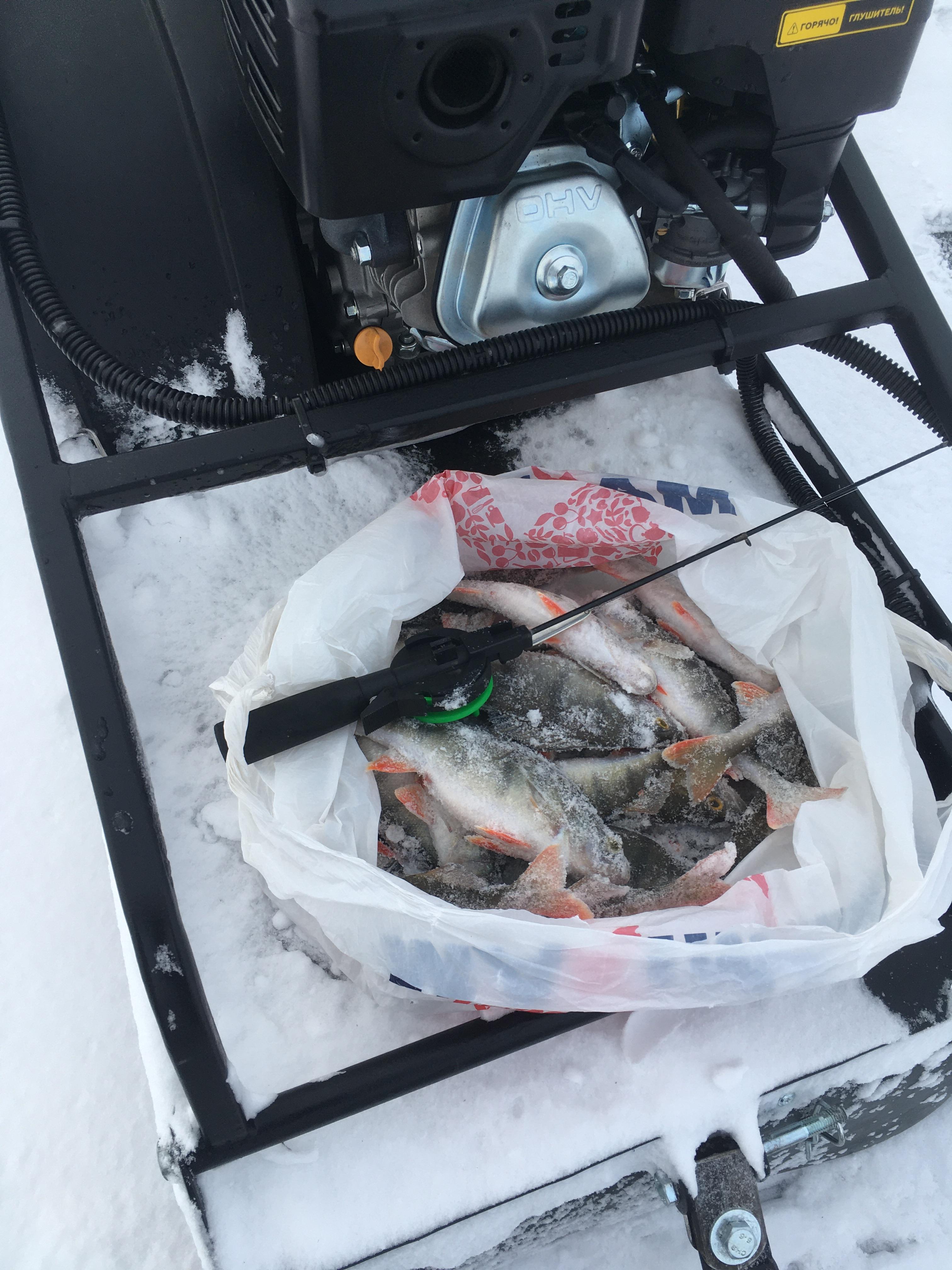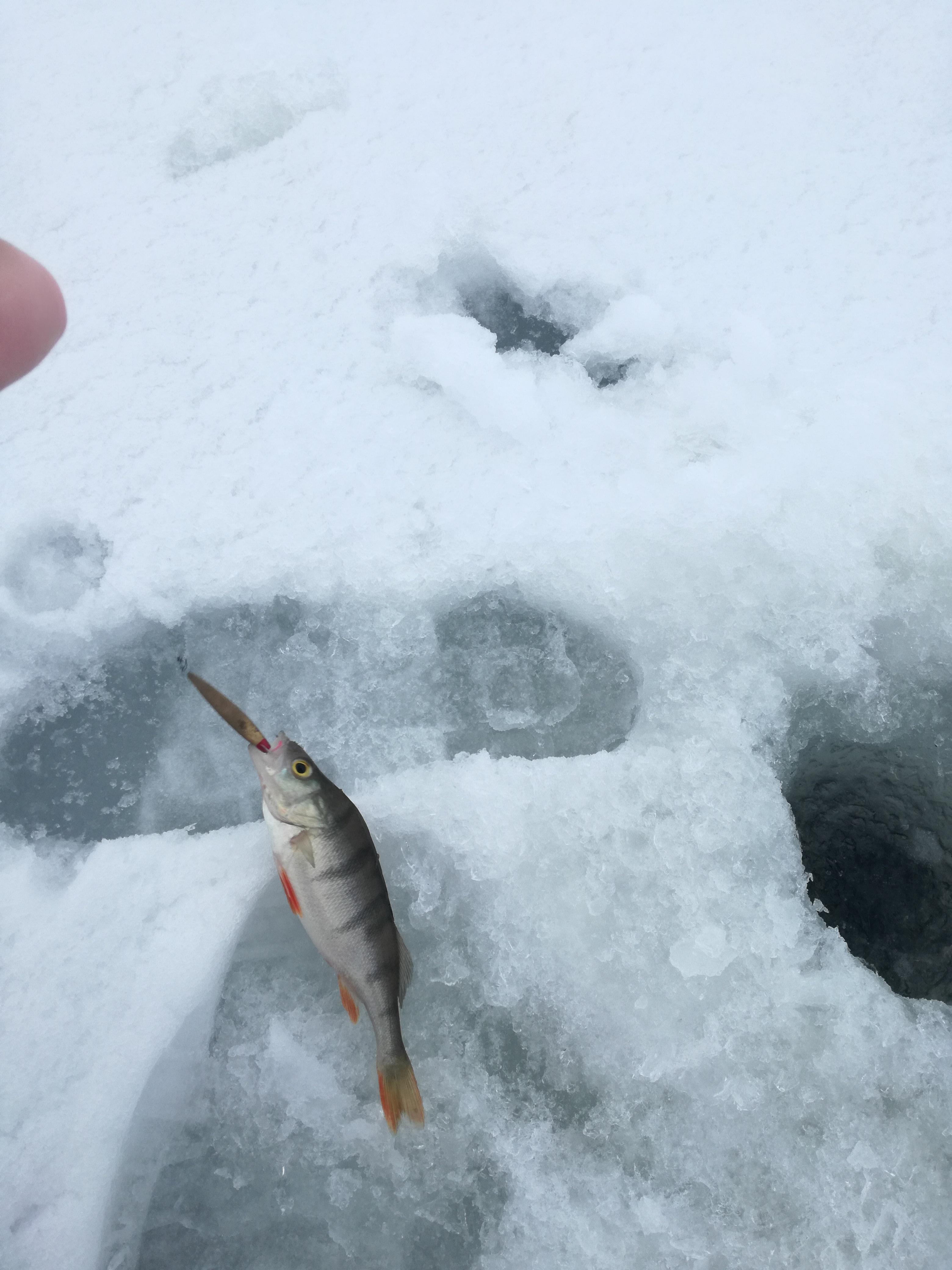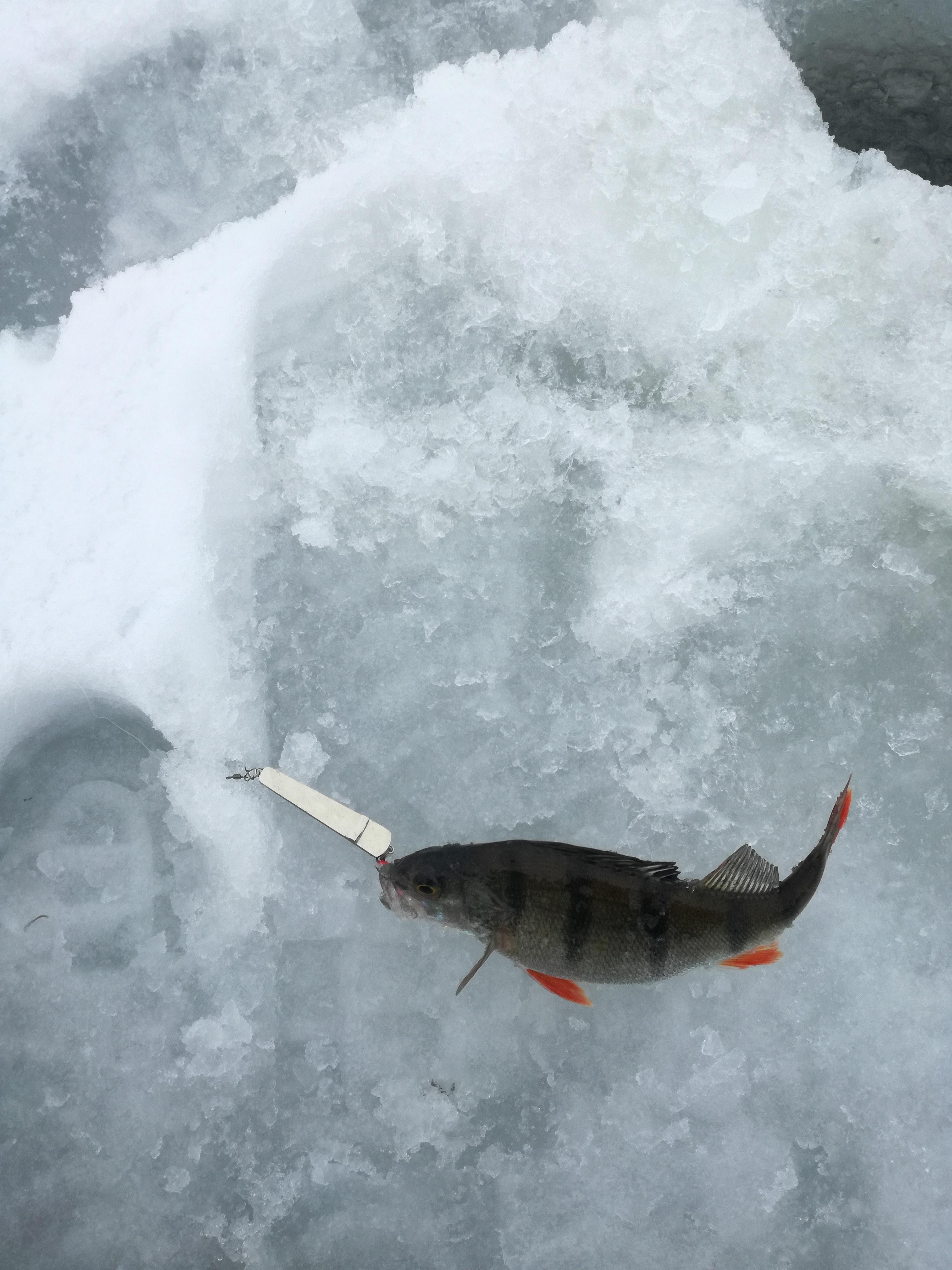 Окушек с утра поклевывал, но мелкий, почти все в лунку.