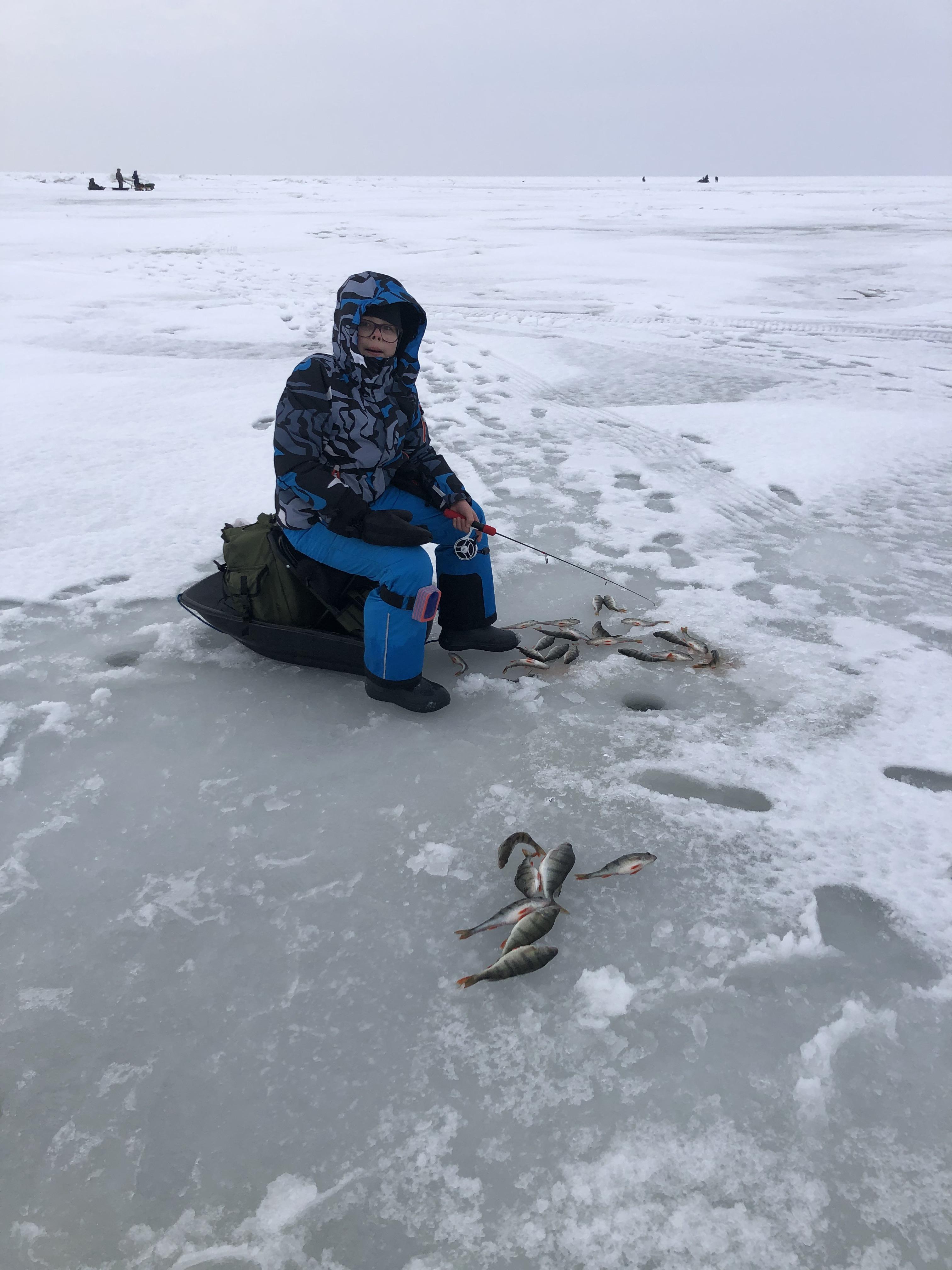 Мороз почти 20, ветрок. Клёва не было. Все взяли максимум по 10 окуней.Даже один наш более опытный рыбак ушел на 4.5 км и тоже пришёл с 10 окунями. И то он был аж до 4 часов