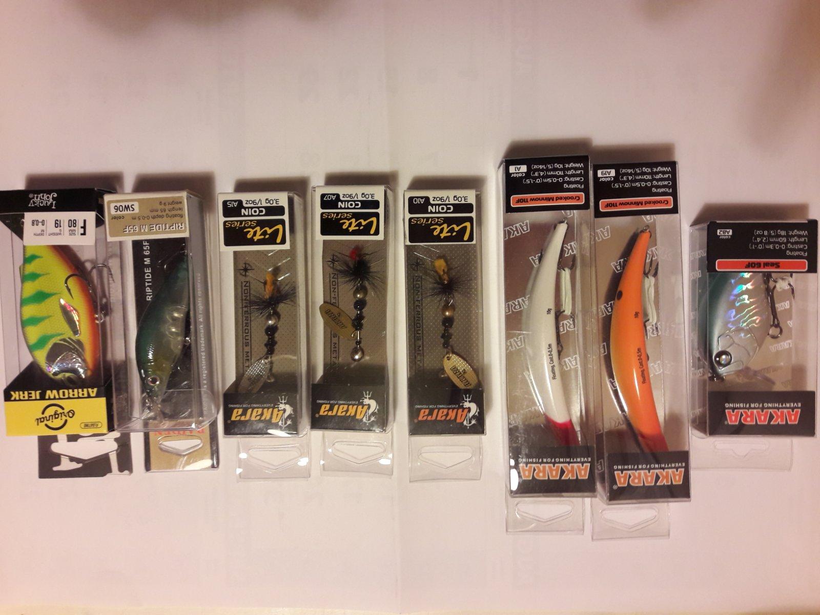 Riptide M 65F. Копия несовсем известной мне приманки ( то ли Бомбер, то Хреномбер, но что то в памяти навеивает ). Понравился цвет. «ТТХ»: вес 9гр., 65мм., заглубление 0-0.5м, цвет по каталогу SW06 . Внутри 2 шарика.И на пробу взял 3 вертушки ( на фото внизу ). Мелкие, 3гр. На форельку или окушка.