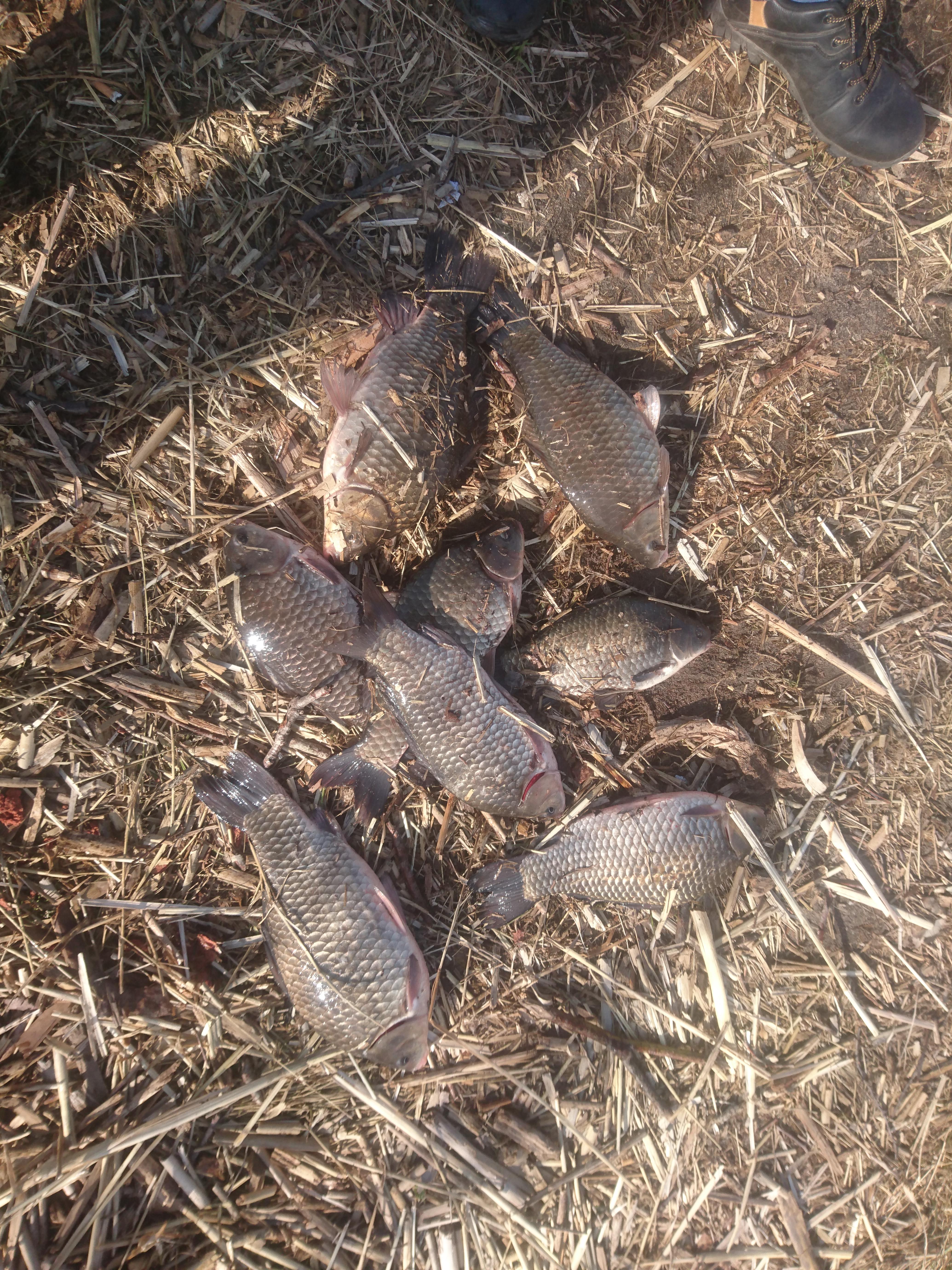 раскинулся быстро, минут 20 тышина и первая поклёвка сошла в камышах, взяла на опарышь, ну думаю понеслась, а нет. Сидел мину час)))) думаю надо сменить наживку и прочее, вытащил карася)))) загарпунил за плавник)))) Был в шоке, карась то нормальный)))) 700гр. Потом ещё было пару сходов и в 13 собираться начал и поклёвках на кукурузу 900гр карась))) в общем доволен, сегодня вечером аншлаг там будет, и возможно клевать не плохо, погода тёплая. Фото прилагаются.