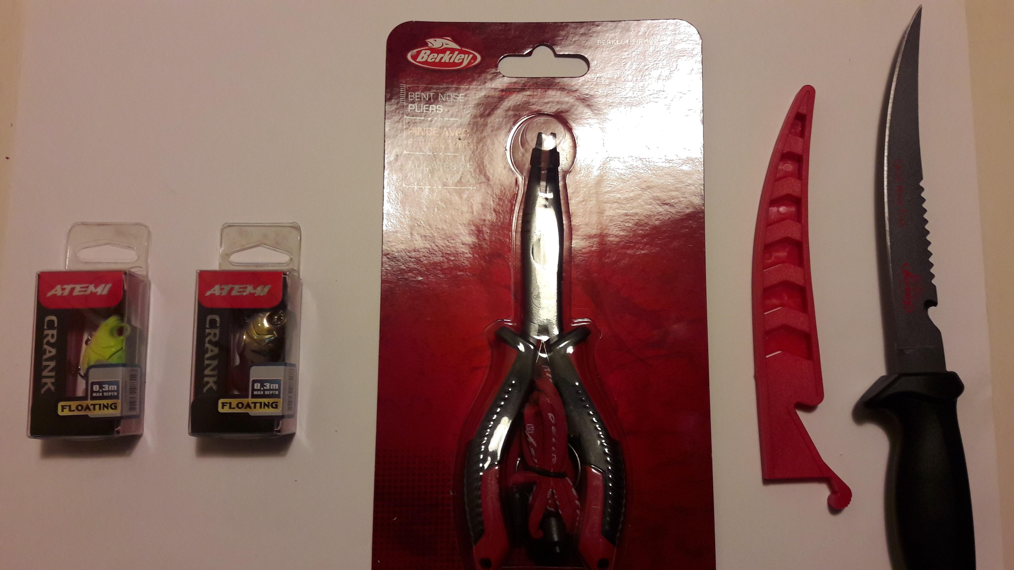 «воробьи» на окуня ( 4,5 см. 6,5гр. ), щипцы, филейный нож.