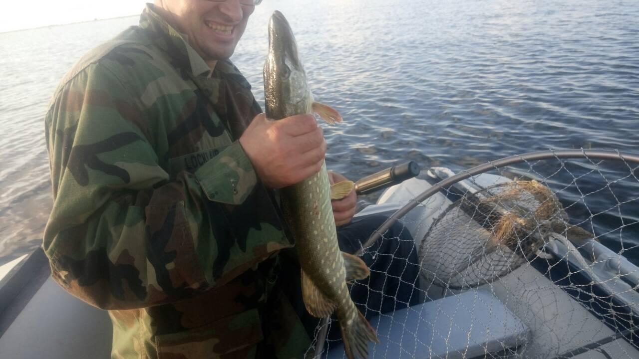 Игорь был один в лодке , без мотора. Но он и не понадобился. Говорит , только вышел, отошёл от берега метров 70-80, первый заброс — шукарь сидит. И так целый день.