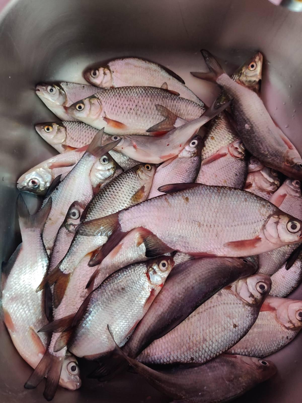 Основной улов, как видите, густера. Размер разный, но мелочь преобладает. Иногда проскакивает плотва. Мерного окуня не было.