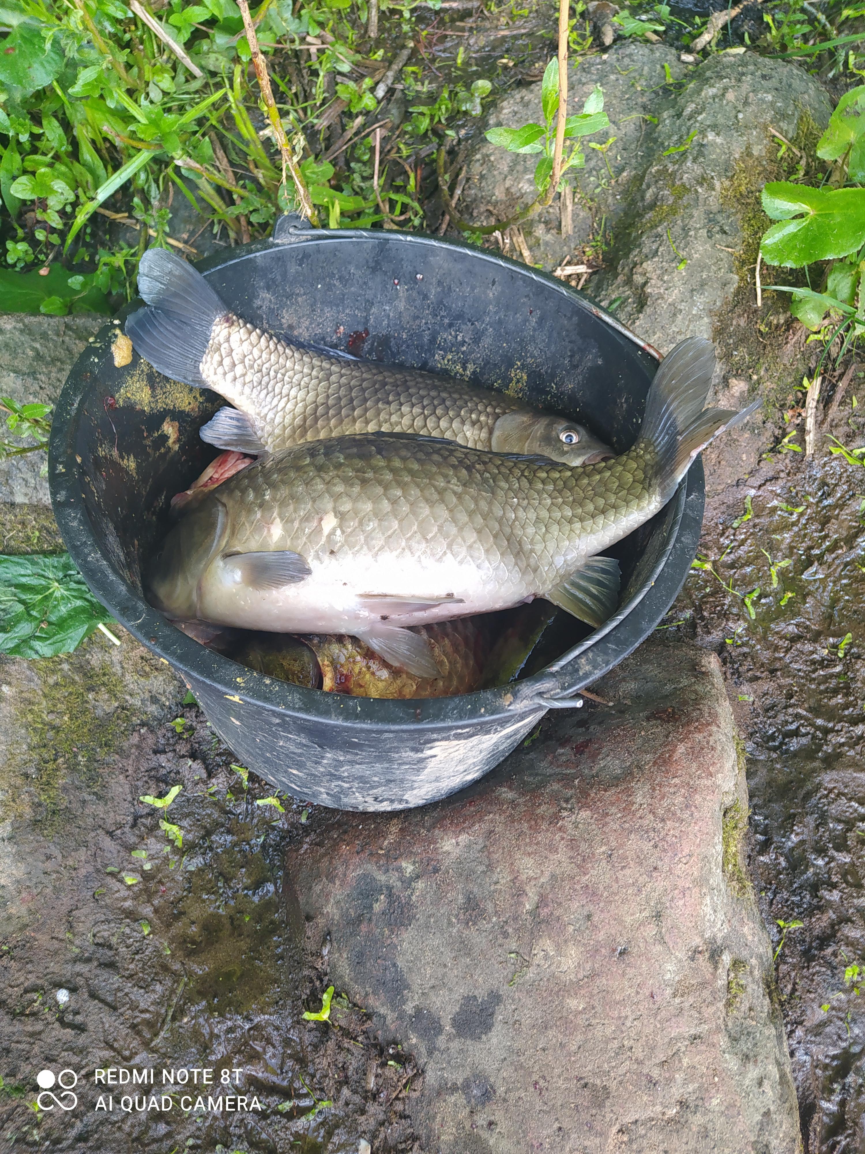 Одному из них из 7 поклёвок удалось реализовать 4. Все караси за кг.