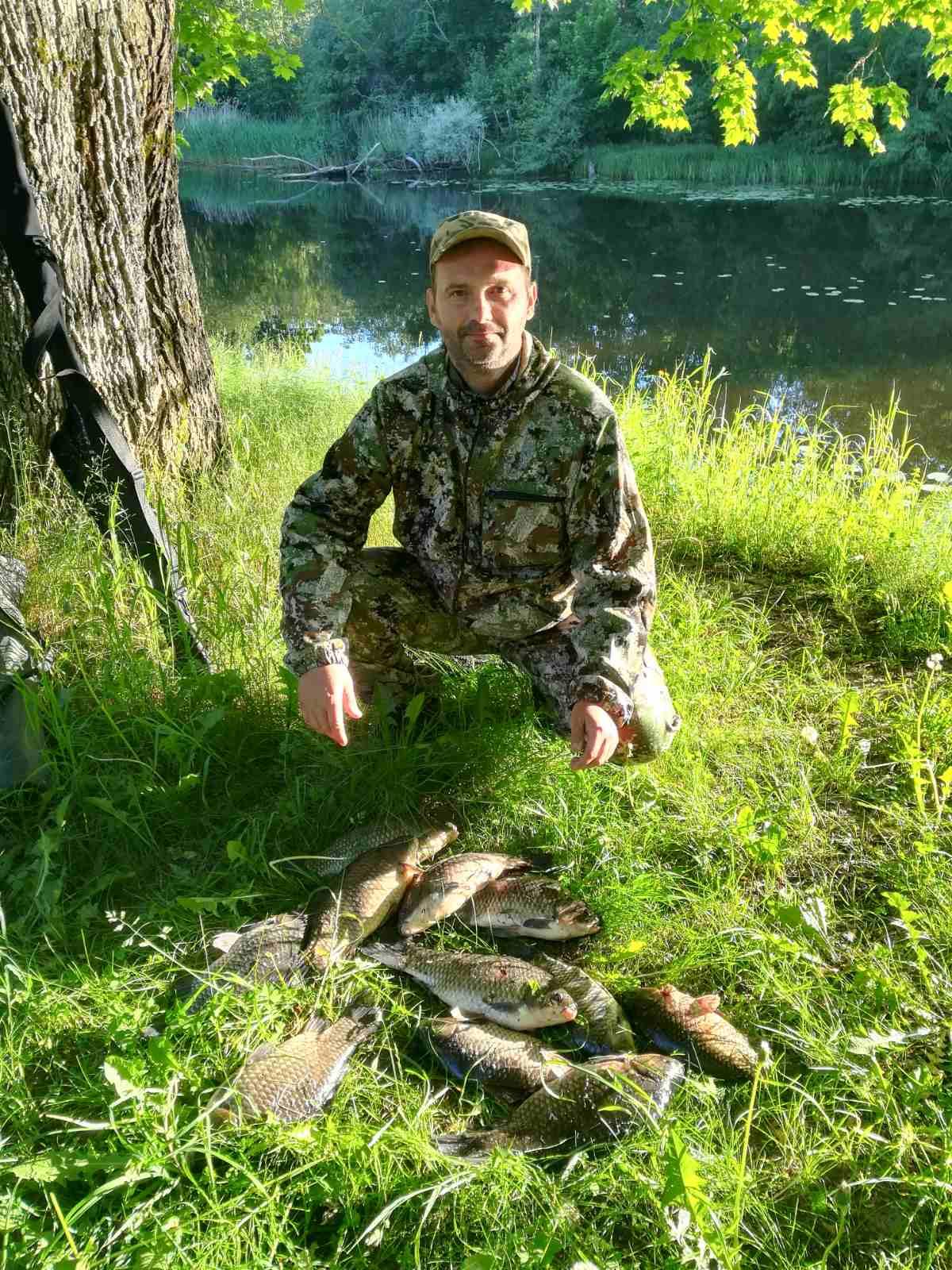 Под солнцепёком спокойно наловил своих 15 карасей и обгоревший пошёл домой.