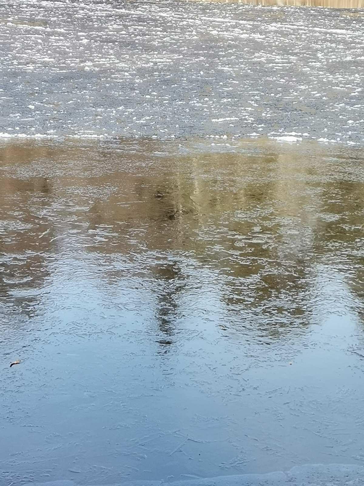 Речка забита шугой. Лов на фидеры представляется проблематичным.