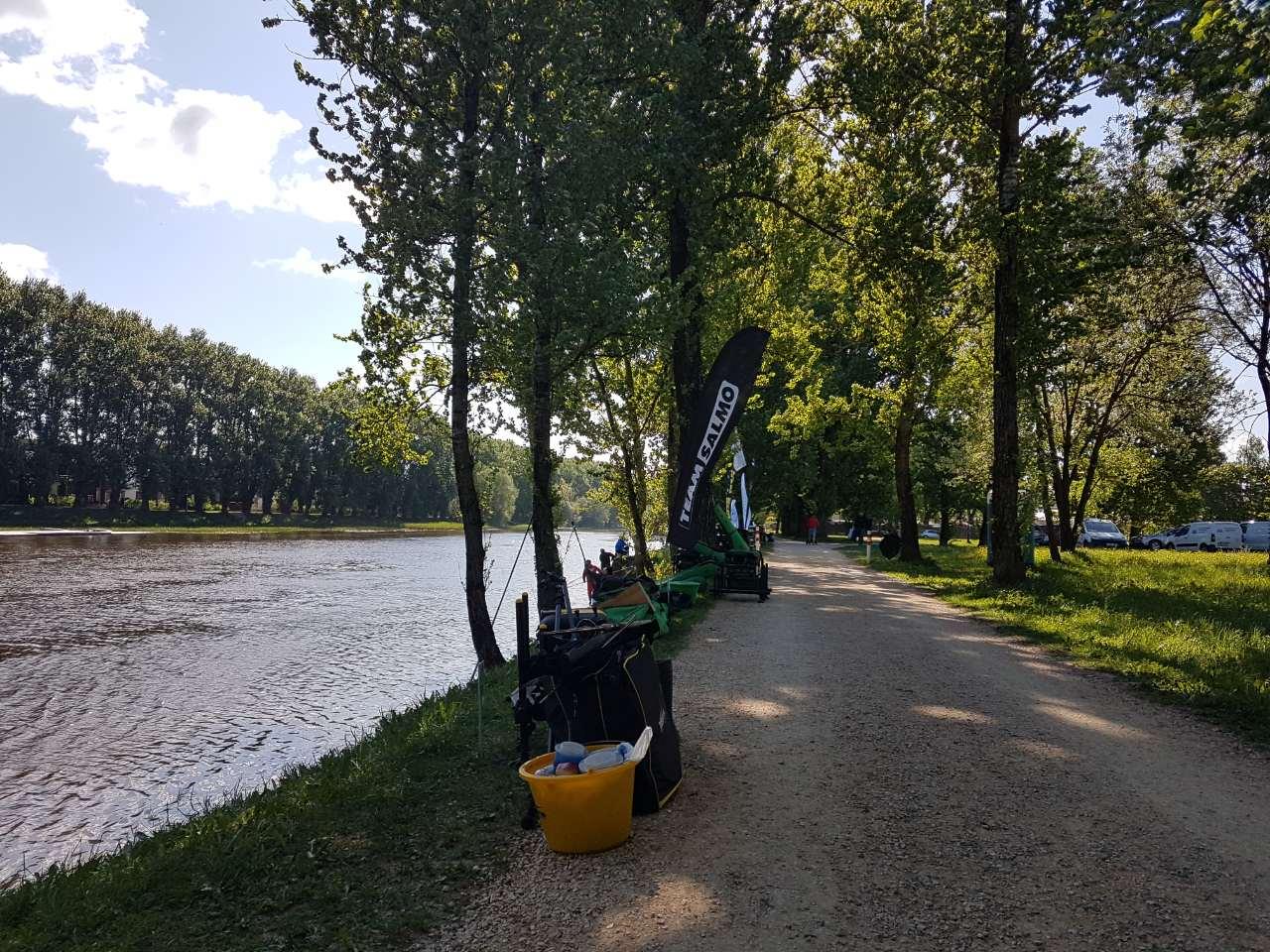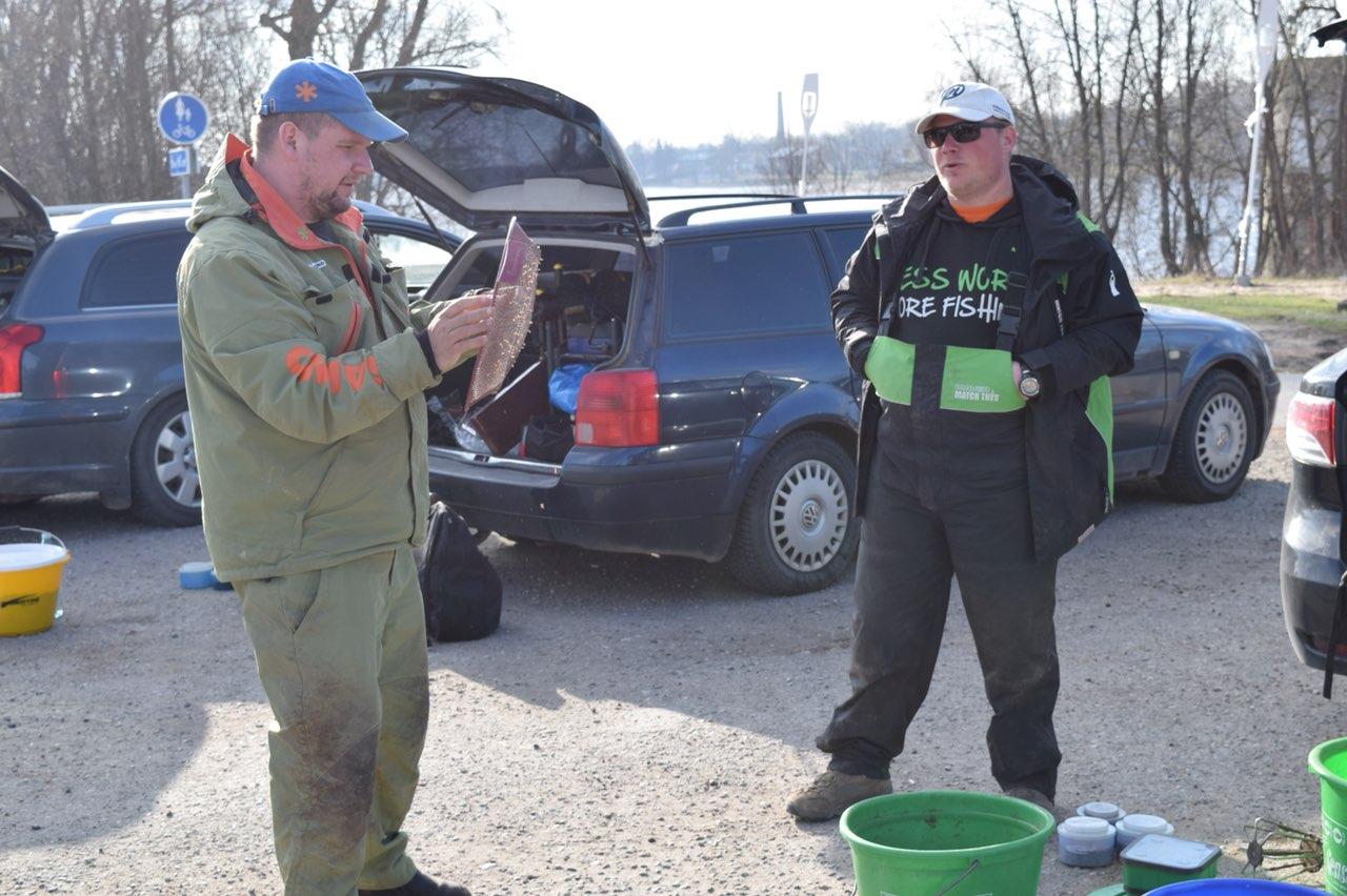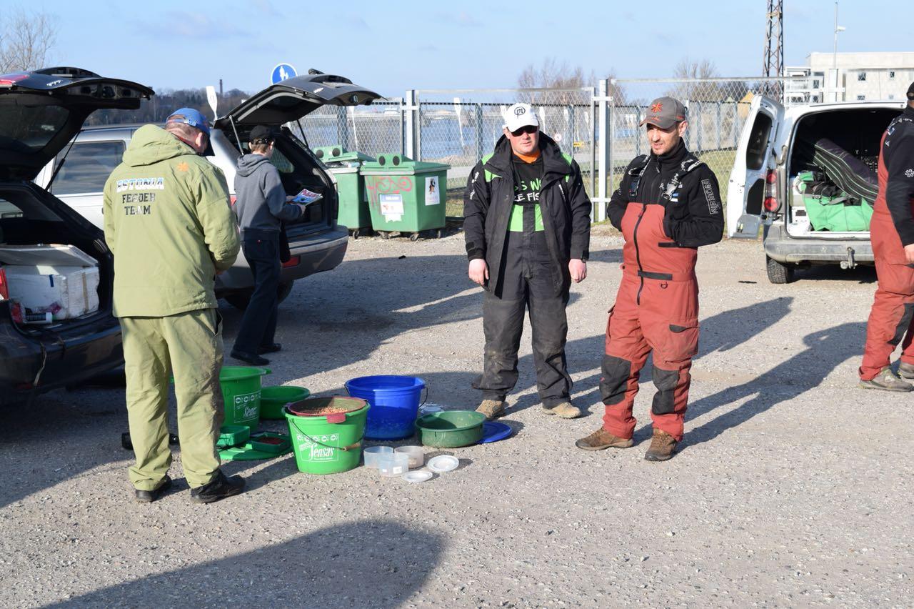 В связи с затянувшейся зимой в Эстонии тренировка у меня совпала с открытием сезона и я с нетерпением ждал этого дня. В 6 утра я выехал из Таллинна, дорога пролетела очень быстро и в 7:40 я уже был в Пярну. В связи с тем, что на месте старой трассы, ведутся строительные работы, вторую зону организаторы вынесли на другой берег и километра два выше по течению, на старый пирс. Там и решено было провести тренировку. С погодой в этот день повезло. Ветер 3-4 м/с,пасмурно с прояснениями. Для ловли подготовил 3 типа удилищ с дублями. Maver Diamond 10ft для ловли уклейки и на ближней дистанции, Maver Diamond 12ft для средней дистанции и Maver Diamond Extreme Long Casting 14ft для дальних дистанций. Промер дна показал давольно ровный стол, на всем протяжении, без каких либо существенных аномалий. Привязаться абсолютно не к чему. Выбираю просто точки перед небольшими подьёмами. Главное чтобы в точке не было травы. Решаю работать на трёх дистанциях 32 м 53м и 83 м. Совсем близкие дистанции не рассматривал, так как огромное количество уклейки было в береговой зоне. Начинаю ловлю с 32м , 5 средних кормух и поехали. Первые пол часа решаю держать темп 30сек, но густера отозвалась сразу, поклёвки следовали на 10-15 секунде. Размер правда не очень радовал. На 10 рыб, 2-3 в районе 60-100гр, остальные 20-50гр. Надо как то укрупняться. Работа с живой на этой дистанции ничего не дала. Рыбу укрупнить так и не получилось. Решаю перейти на дистанцию 53 м. Там рыба тоже стоит плотно, но размер получше, больше половины рыбы нормального размера. Правда здесь поклёвки следовали не так быстро, ожидание до 40 сек. Темп был очень рваный, но в целом эта дистанция казалась перспективней первой. Половив около 1,5 часов на каждой дистанции я решаю проверить дальняк. Очень понравились бросковые качества палки Maver Diamond Extreme long cast 14 ft. На таких дистанциях я ловил ей впервые, до этого использовал ее только в Словакии на Browning Cup, там я работал с ней с весами до 160 гр и дистанцией до 35 м. Здесь же получилось проверить и ее бросковые качества и остался очень доволен. Что касается самой ловли на этой дистанции никаких результатов она не принесла. Рыба так же плотно стояла на точке и размер был точно такой же, как на средней дистанции. И эту дистанцию мы сразу отсекли. Потом я вернулся на ближнюю дистанцию и тут меня ждал неприятный сюрприз, на точку плотно спустилась уклейка и вообще не давала ловить. Никакие манипуляции с кормушками и поводками не приносили результата. Густера проскакивала, но 80% рыбы это была уклейка. Стало понятно, что кормить надо очень дозировано и мелкими кормушками и часто ловить вообще пустыми кормушками. Тем не менее на дистанции 52 м так же продолжала стоять густера и в конце удалось половить ее в неплохом темпе. Дальше я около часа потренировал уклейку и выяснилось, что на ней тоже можно делать результат, около 1 кг в час , что давало повод для размышлений. В связи с нововведениями fipsed, уклейку стало фидером ловить гораздо проще, ловля стала похожей на ловлю на махалку, что очень сильно увеличивает темп и при удачном стечении обстоятельств 6 кг уклейки вполне возможен. По итогам жеребьевки я пришел к выводу, что самая надежная дистанция в плане густеры это 52м, но и 30 м не стоит выпускать из головы, кормить надо очень дозировано, часто использовать пустую кормушку, поводок максимально короткий, с лесками и крючками мельчить не стоит, 
