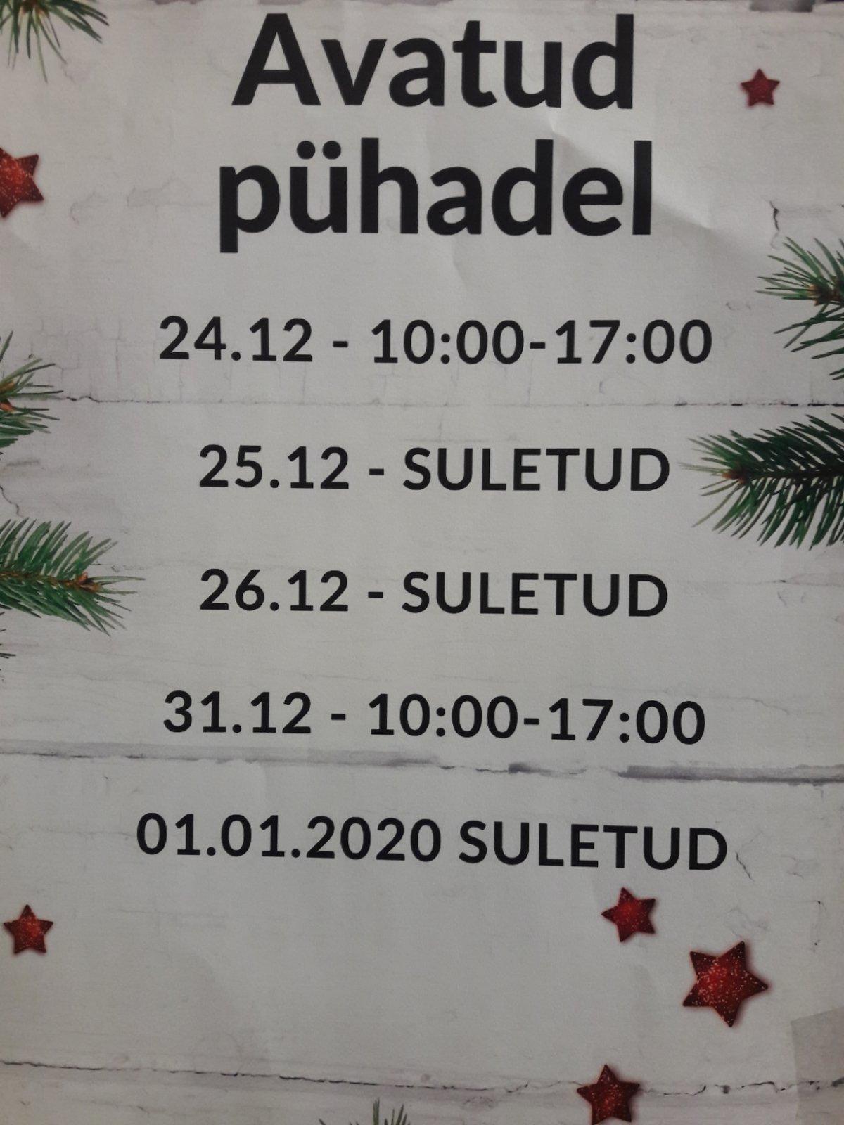 MaksudУчастникГрафик работы таллиннского магазина на праздничные и предпраздничные дни.